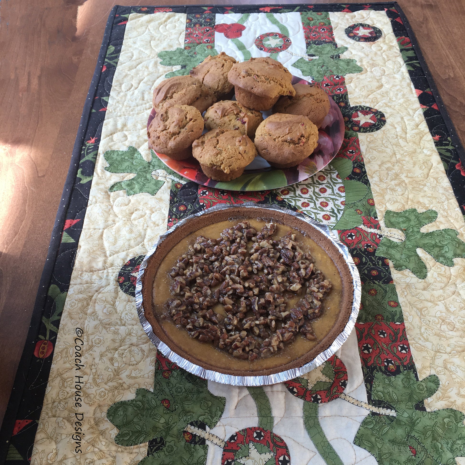 20" x 38" Table Runner featuring "Round Robin" fabric line by Kathy Schmitz.  Pattern and fabric released 2012.