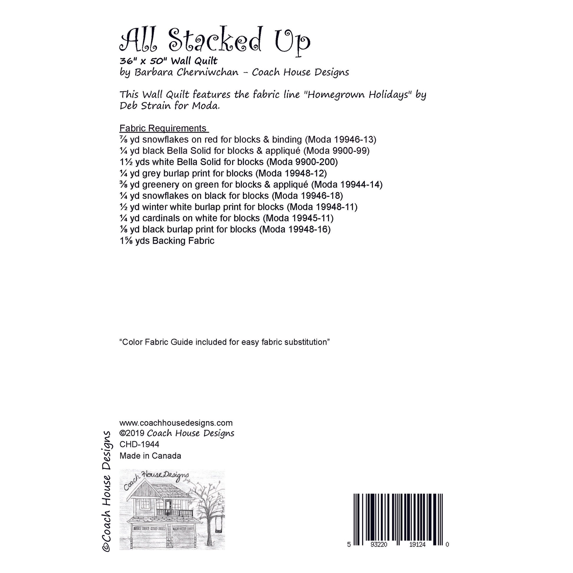 There’s a Christmas party in the barn and you are invited! This farm fun wall quilt features Deb Strain’s "Homegrown Holidays" fabric line and measures 36" x 50". The pattern and fabric were released in June 2020.