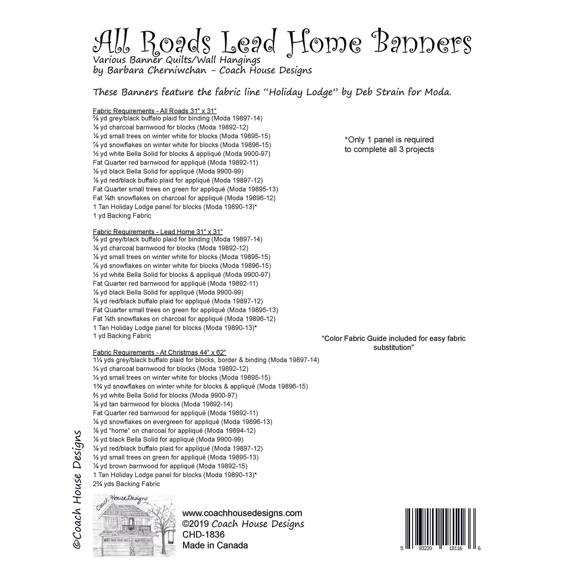 This 3 project (2 - 31" square, 1 - 44" x 62") wall quilt pattern features Deb Strain’s Holiday Lodge fabric line for Moda and uses the Holiday Lodge panel. Pattern and fabric were released May 2019.