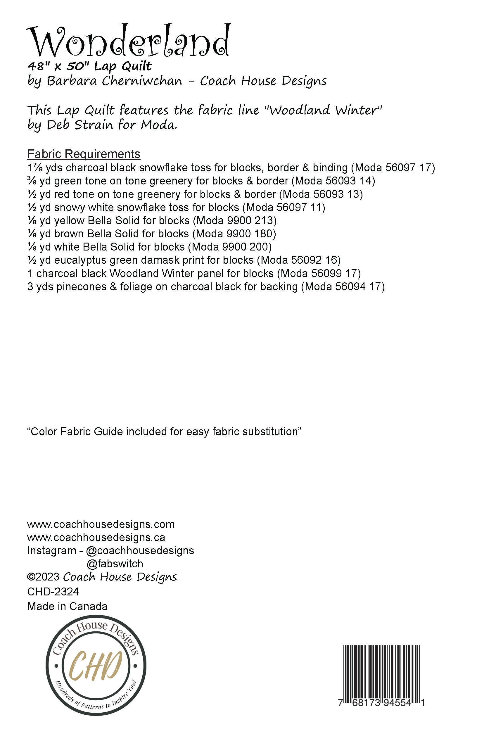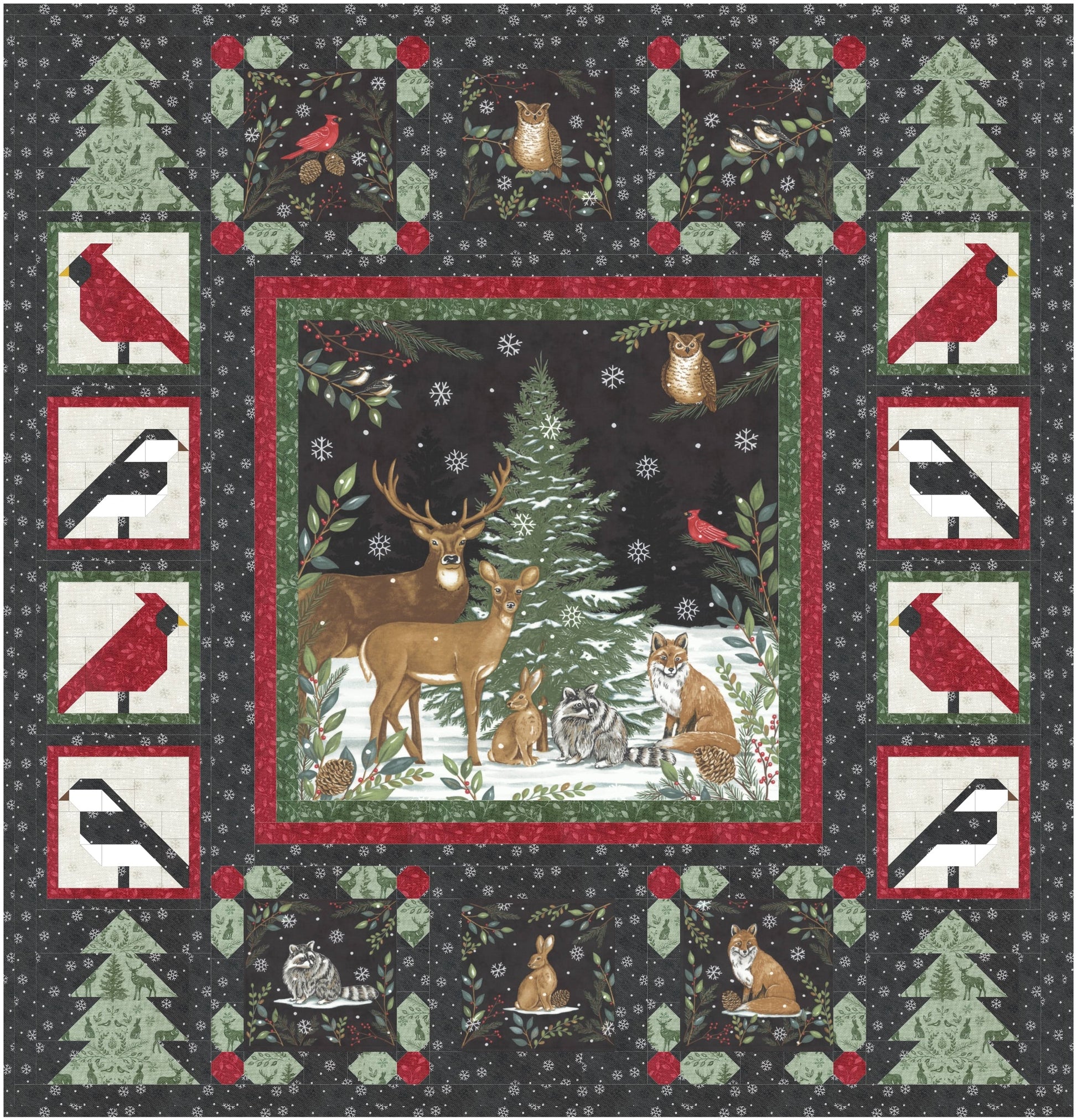 Christmas is one of the best times of the year! Especially the magical snowfall in the woods. New for Christmas 2024 is my pattern "Wonderland" featuring the holiday fabric line "Woodland Winter" by Deb Strain for Moda Fabrics. Finishing at 48" x 50", this lap quilt is all piecing and no applique. It uses the panel from the fabric line, that showcases woodland animals amongst the winter pines.