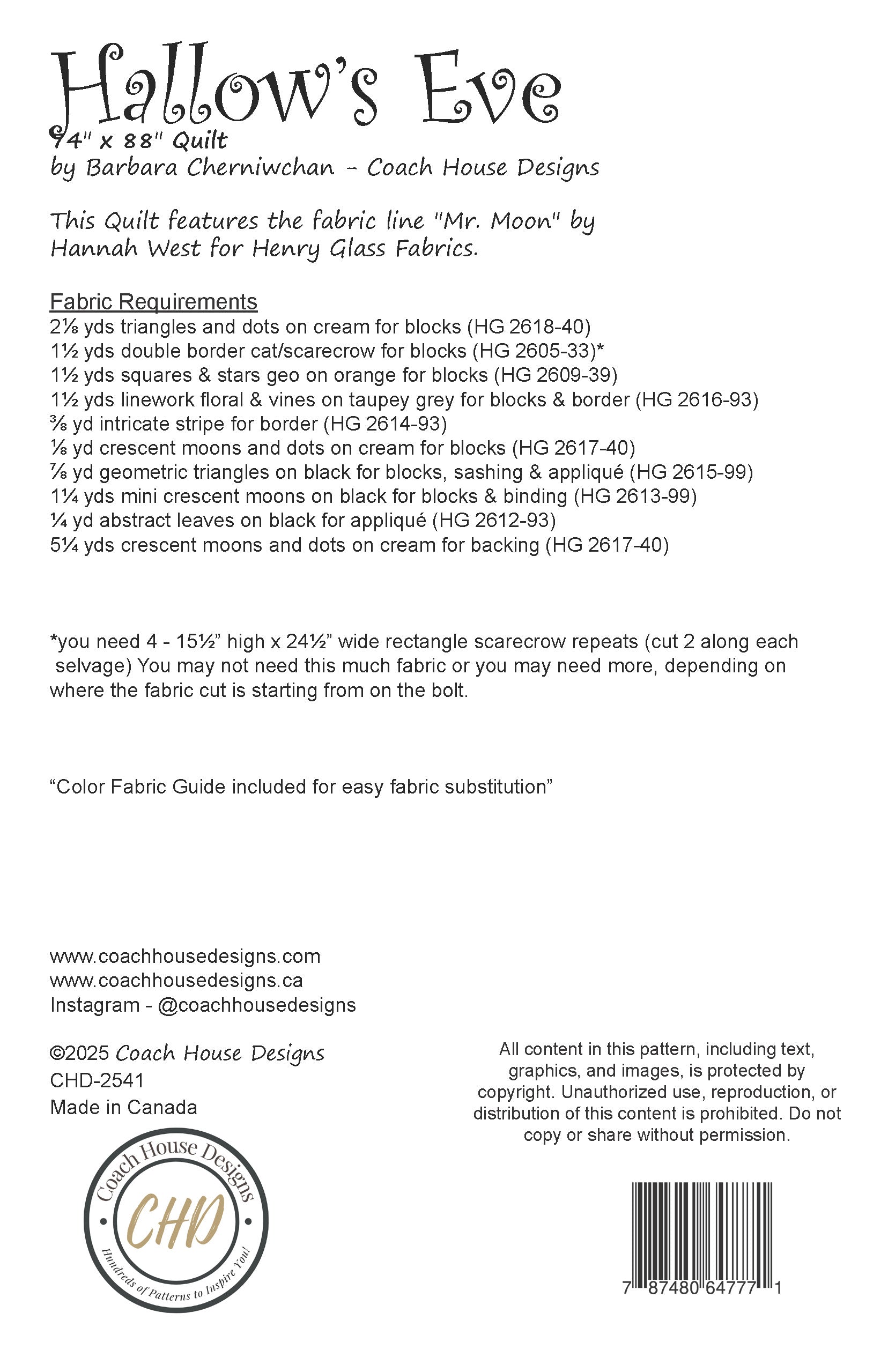 Hallow’s Eve – A Spooktacular Halloween Quilt Pattern by Coach House Designs