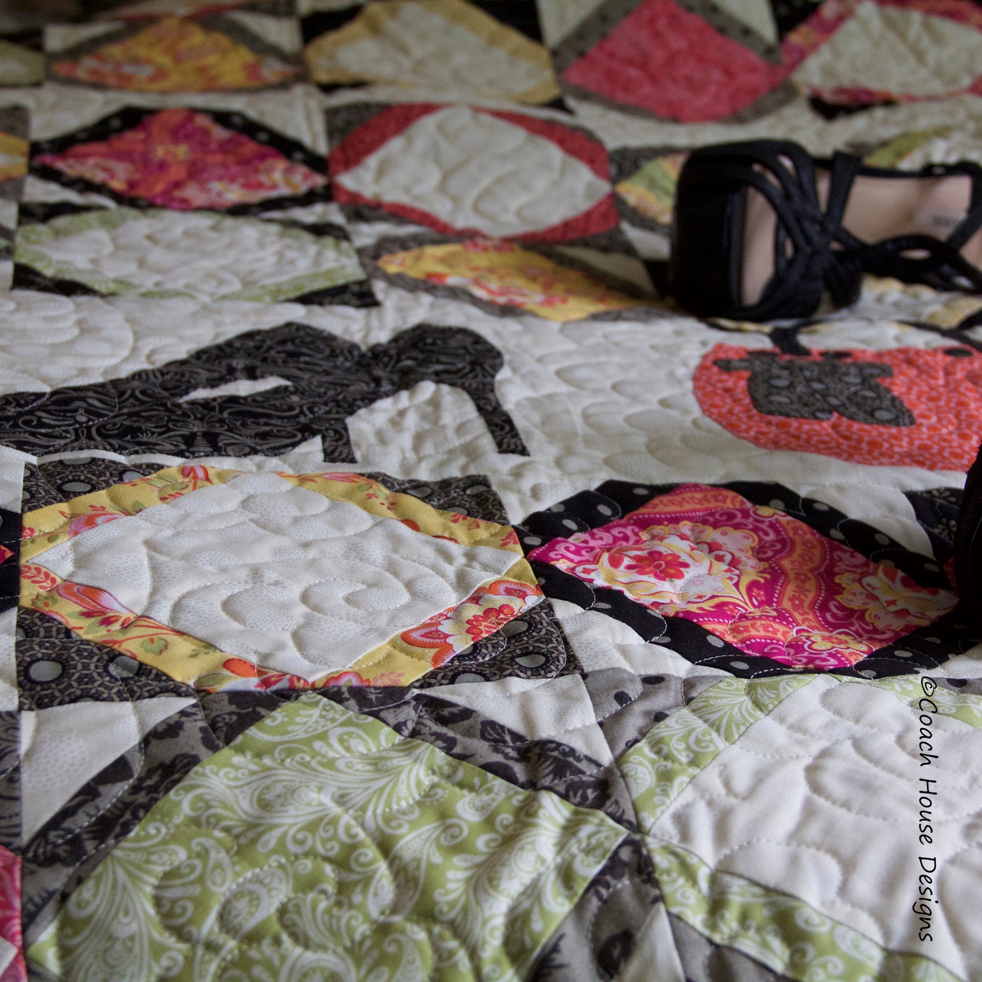 Do you love shoes and purses? This girly lap quilt (52" x 70") uses piecing and applique - featuring Little Black Dress 2 by Basic Grey and High Street by Lily Ashbury. It also uses Fat Quarters. Pink and green not your favorite colors? Not to worry!