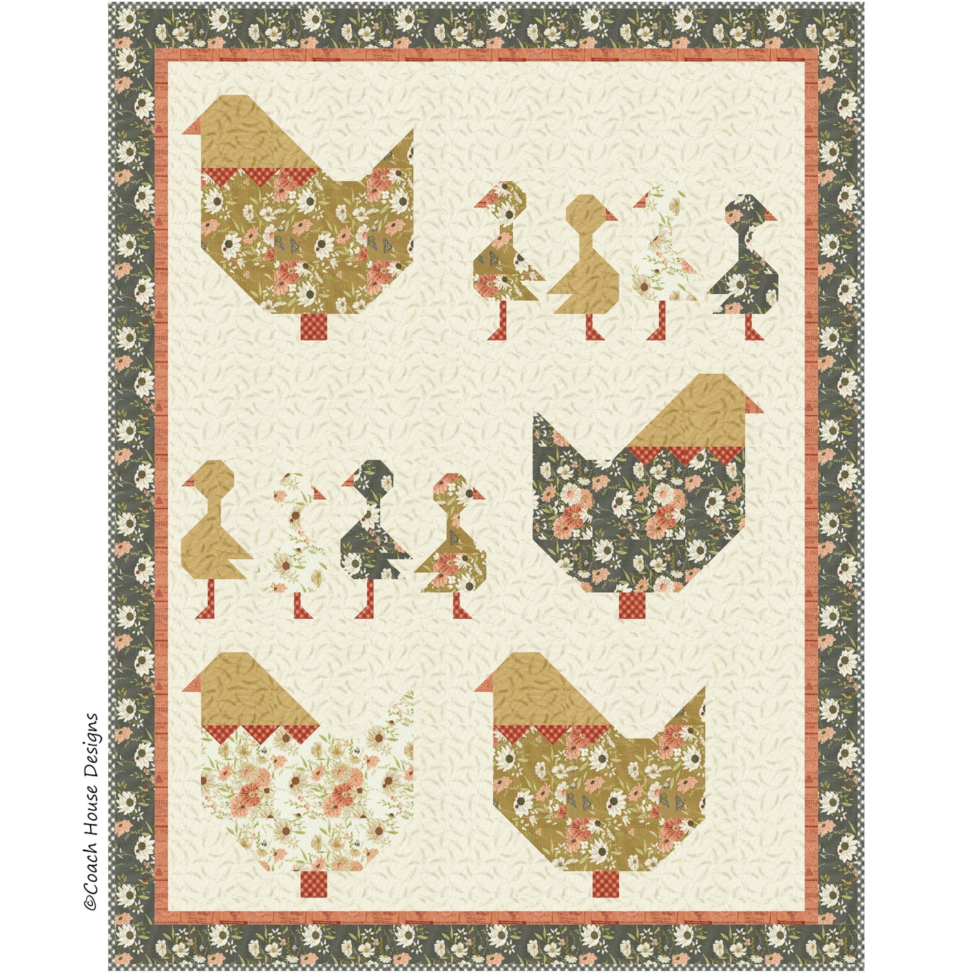 I love the muted hues in "Farmstead", Stacy Iest Hsu's newest farm-inspired fabric line for Moda Fabrics. My Hen Hen Goose lap quilt pattern measures 56" x 72" and features 4 mama hens and a gaggle of baby geese. Stacy's muted florals elevate the design to an elegant addition to your modern farmhouse decor.