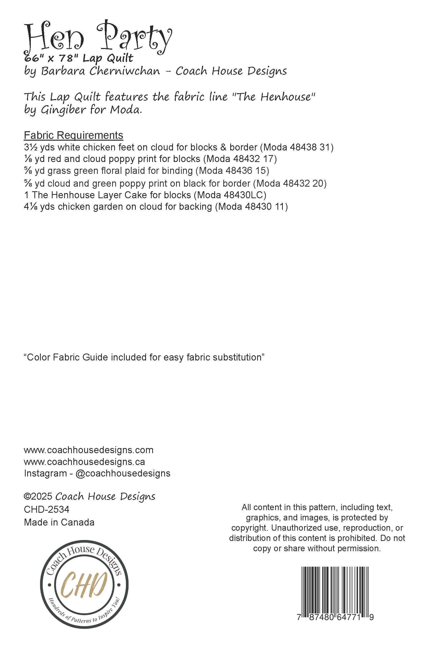 Pre-order your copy of Hen Party for automatic delivery in January 2026, just in time to prepare for the arrival of The Henhouse fabric collection, shipping to quilt shops in February 2026.