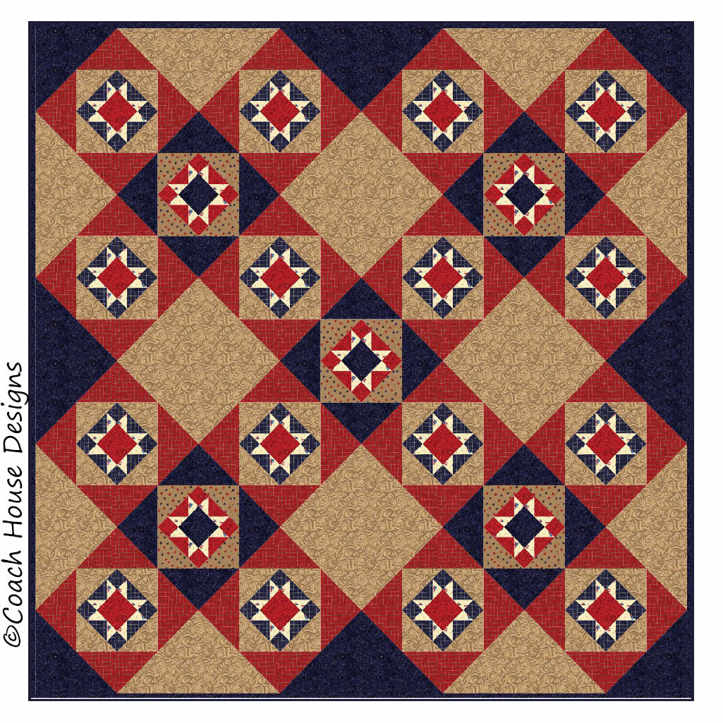 Nothing shows your American spirit more than dressing up your sofa with a patriotic lap quilt! This lap quilt is 67" square and features the fabric line "Sew American" by Deb Strain for Moda which was released in 2017. This pattern is all pieced so if you are looking for some applique, check out Proud & Strong.