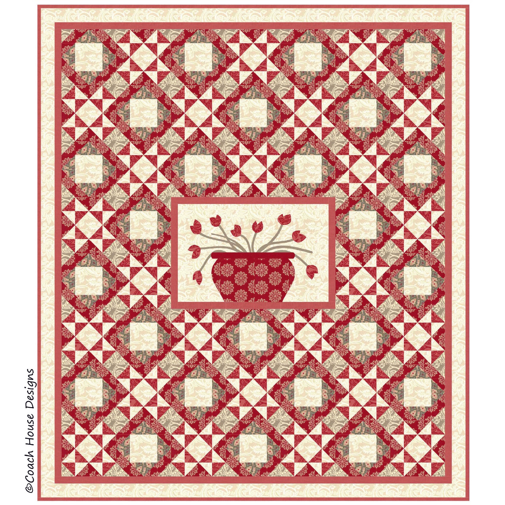 This unique, French-inspired lap quilt (62" x 70") would add elegance to your decor. It features "Madame Rouge" by French General which was released in August 2016. It would be beautiful in any French General fabric.