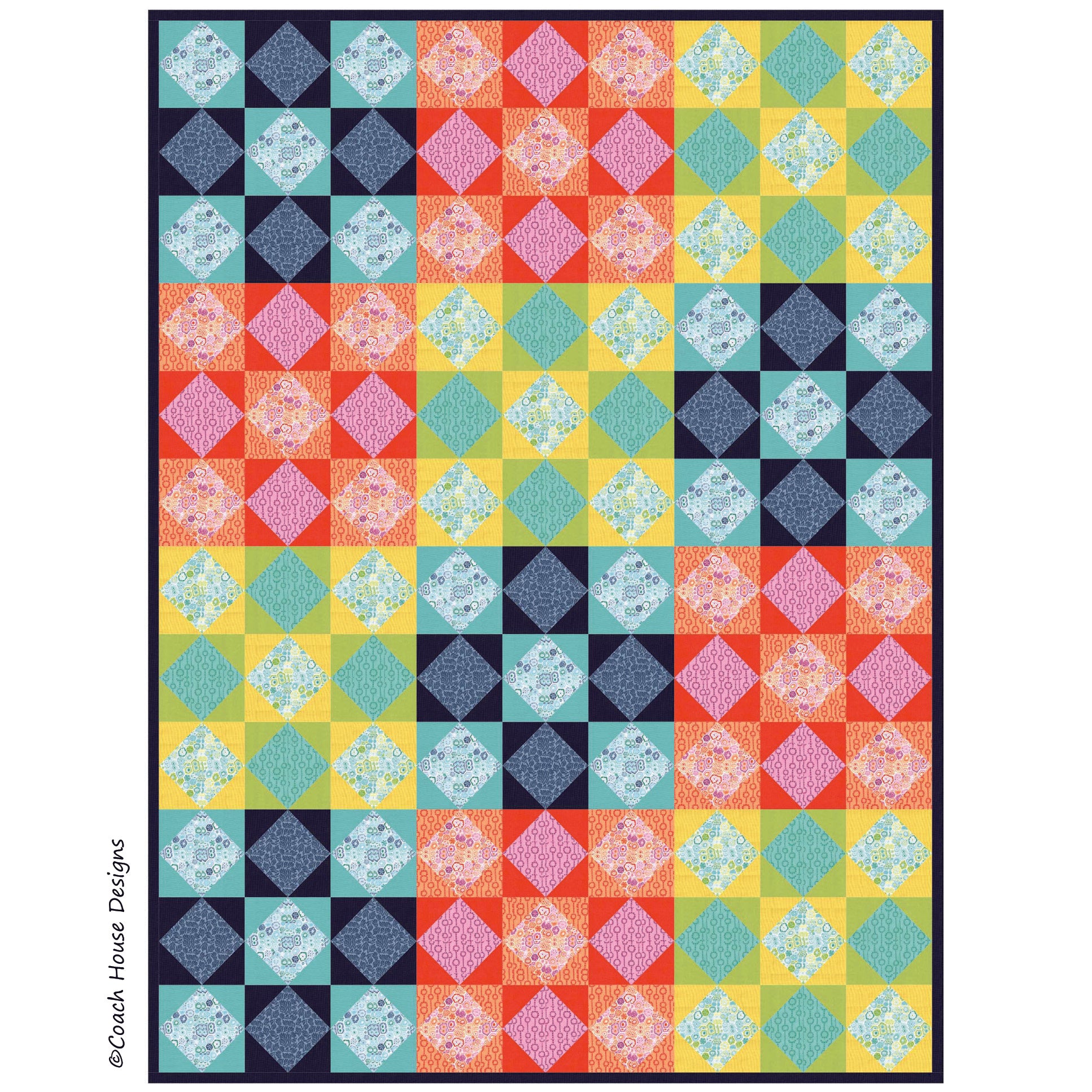 Eye-catching 72" x 96" twin quilt featuring "Grand Canal" by Kate Spain. Change up the fabric and you have a completely different look.