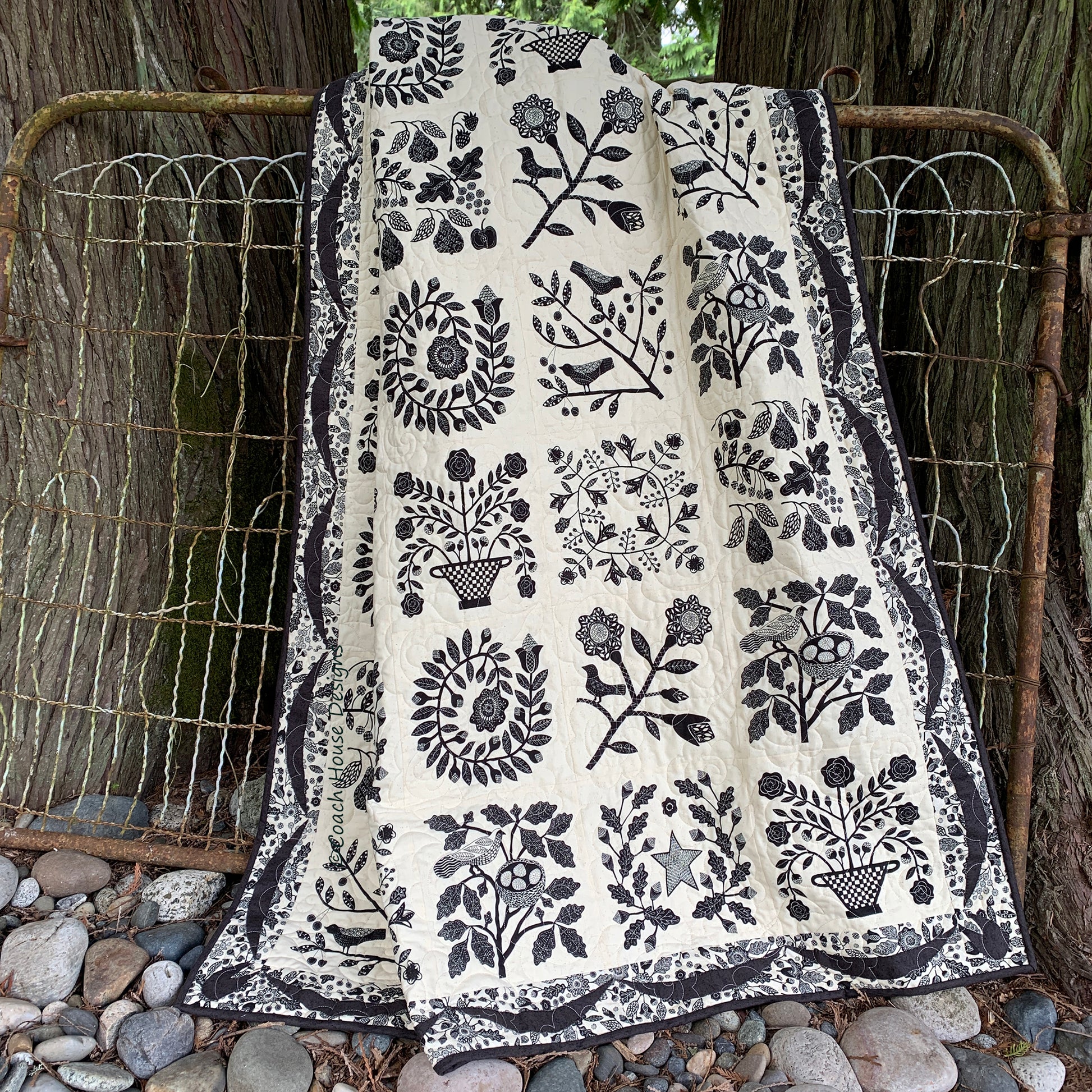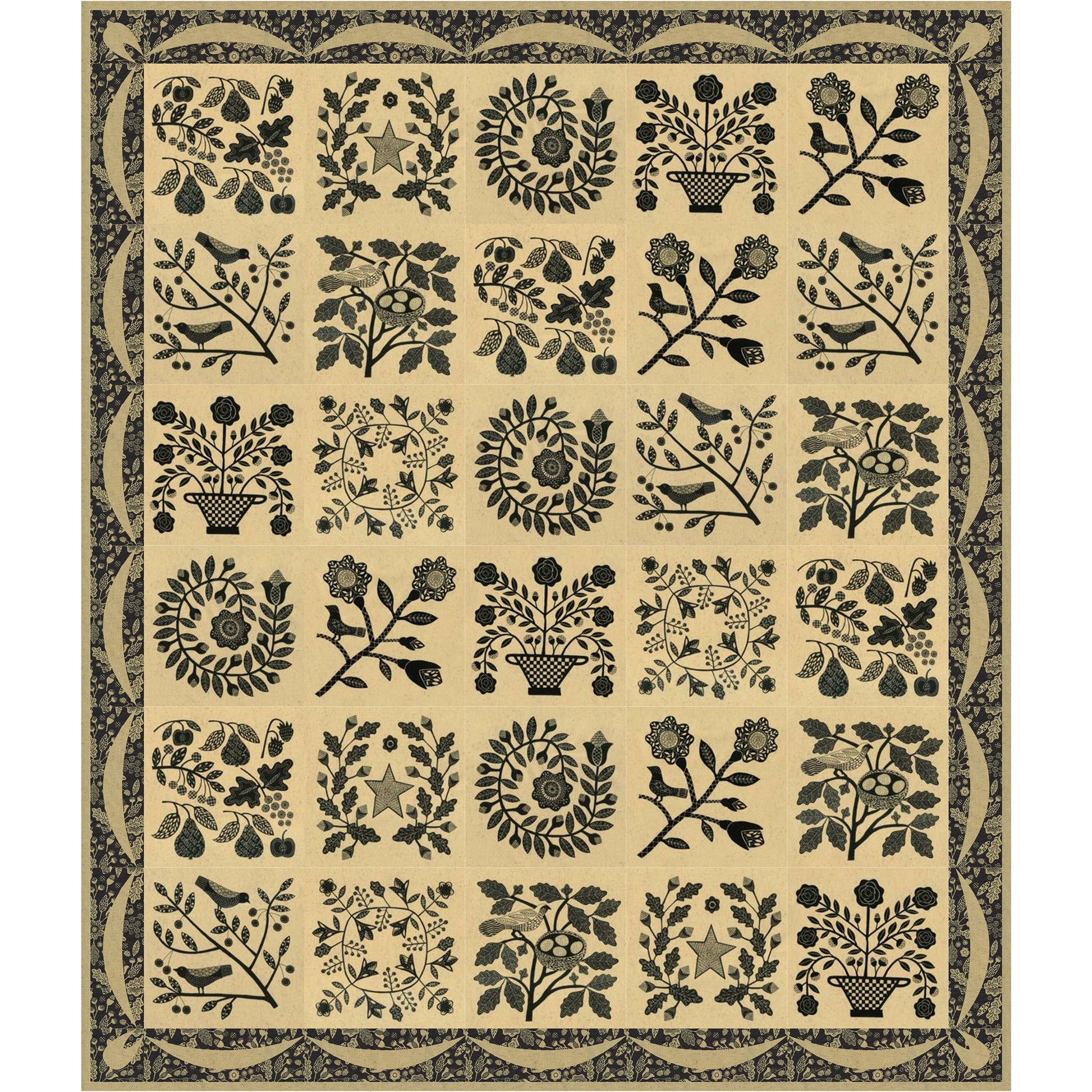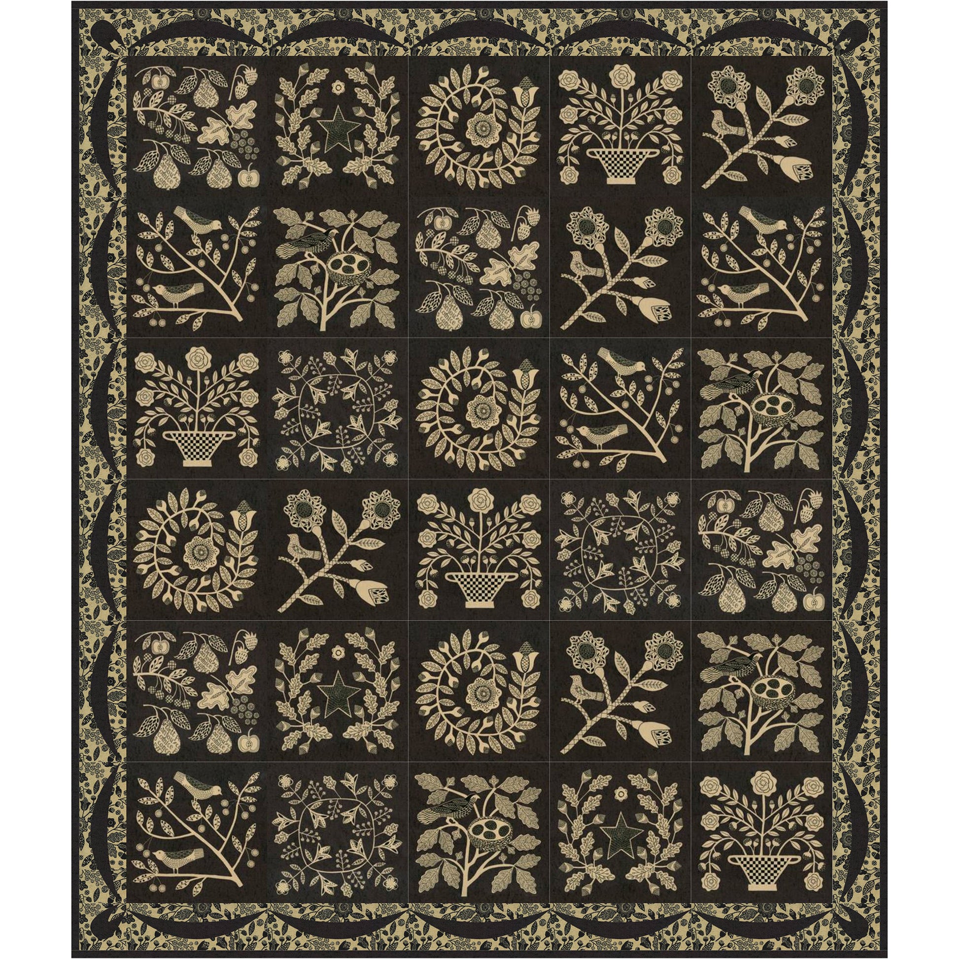Stunning Baltimore Album quilt measuring 51" x 60" which is so easy. The center is made from the panels from Kathy Schmitz's Maryland fabric line and the border is real applique. Fabric will be in stores in February 2021. The pattern is available now.