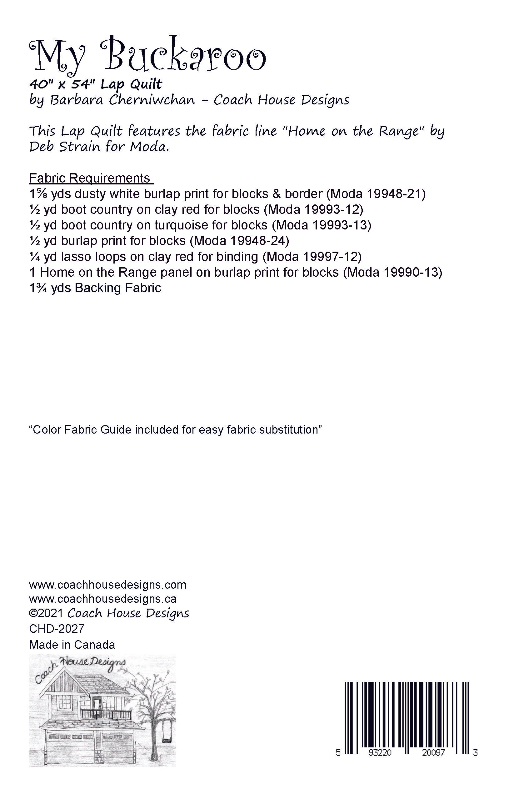 Perfect small lap quilt (40" x 54") for your little buckaroo! This pattern features Home on the Range fabric by Deb Strain for Moda and uses the panel from this group. Home on the Range will be in stores in Summer 2021 and will be offered as a Moda kit by your local quilt shop.