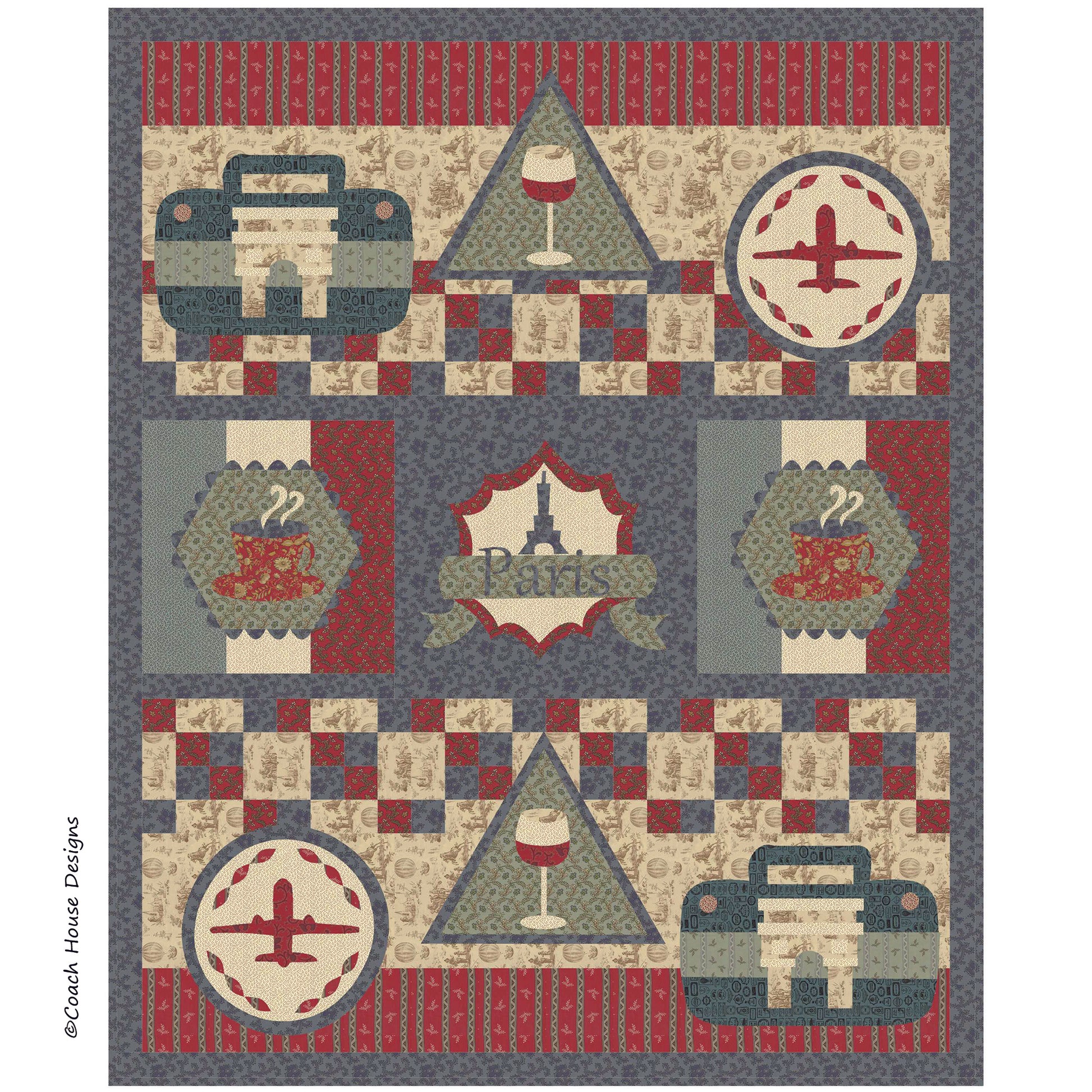 If you cannot fly to Paris, bring the weekend in Paris into your own home. This 51" x 63" lap quilt is shown in "Bon Voyage" by French General. It would look great in any French General fabric