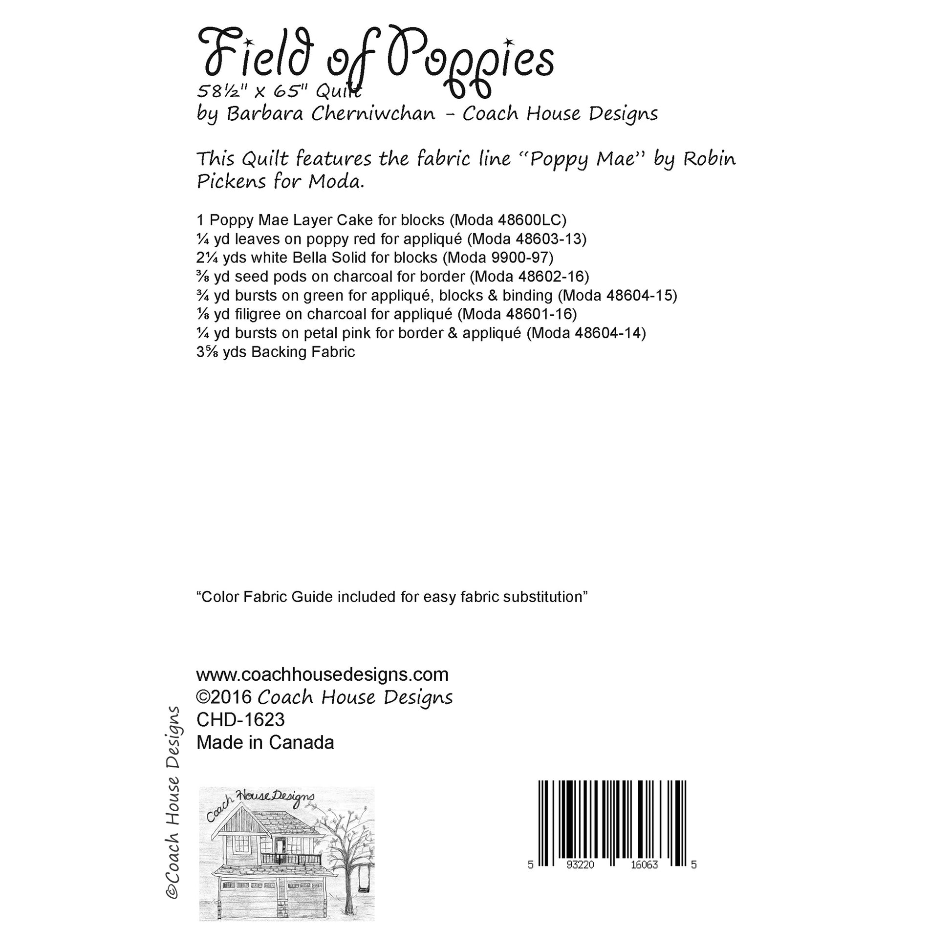This Fun and fresh lap quilt (58" x 65") uses 10" squares.  The wavy edge of the white pieces are appliqued onto the 10" squares giving the illusion of curved piecing.  Pattern features "Poppy Mae" by Robin Pickens which was released in November 2016 but it would look pretty in any floral fabric.  Pattern is also available as a digital PDF download at a discounted rate.