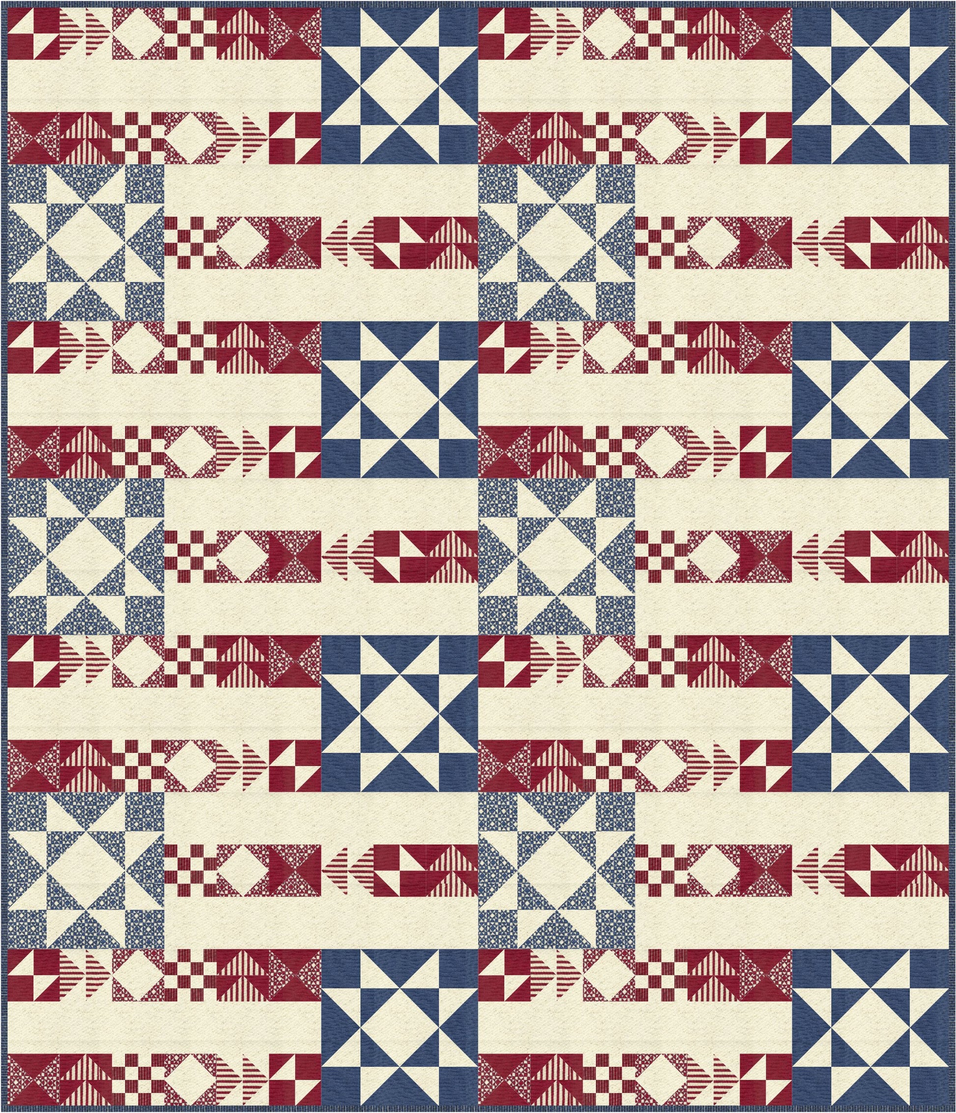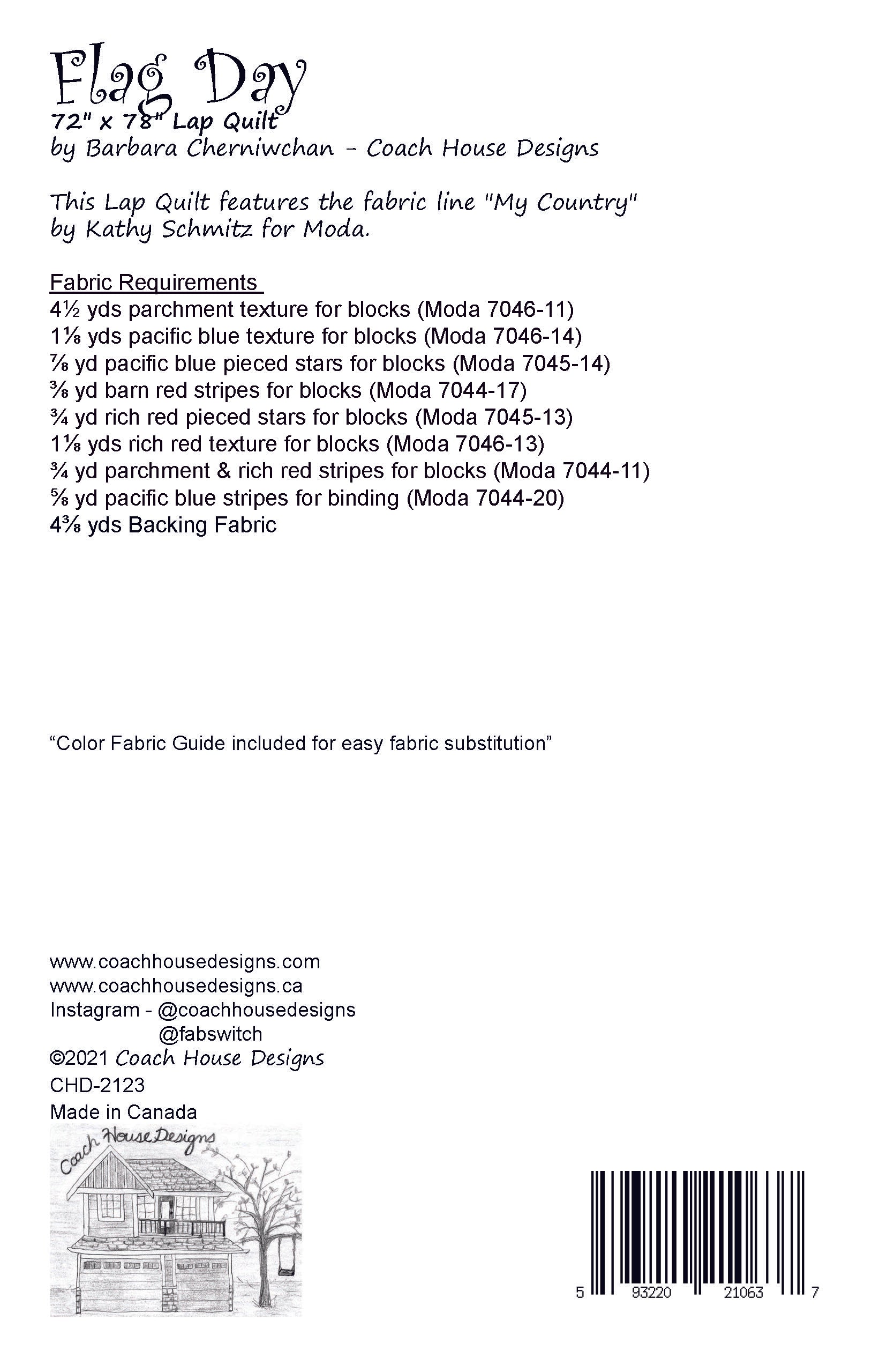 72" x 84" Large Lap/Twin Quilt featuring the fabric line "My Country" by Kathy Schmitz for Moda. Inspired by Kathy's artwork, this multiple flag quilt is destined to be a keepsake. The pattern is available now and My Country fabric will be available in stores early 2022.