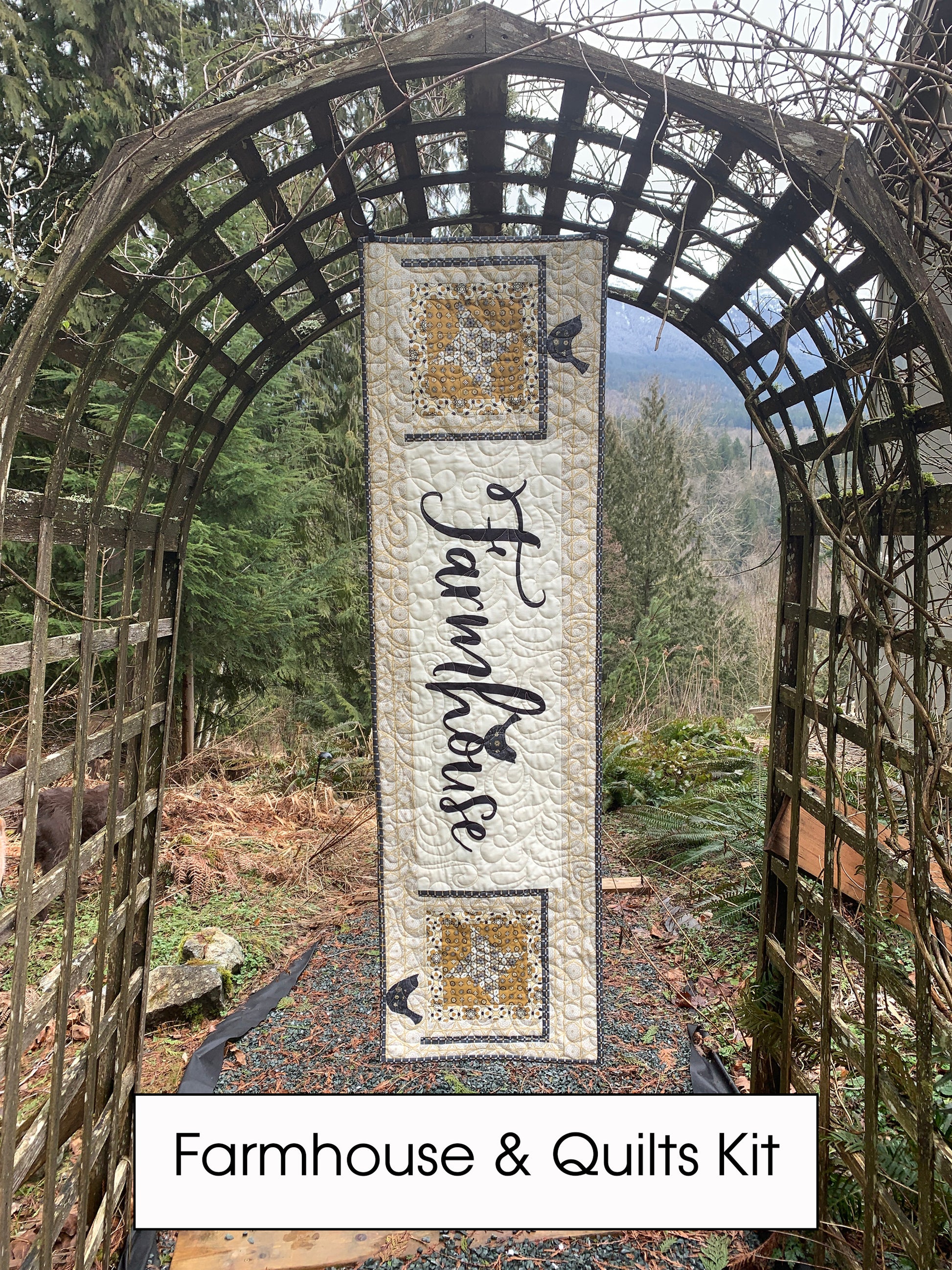 This kit includes the Farmhouse Runners pattern and the fabric to make the 54" long Farmhouse & Quilts Table Runner. The runner uses my new fabric line Modern Farmhouse for Clothworks including the Modern Farmhouse Panel. This runner a great way to bring the Farmhouse look into your home. Limited number of kits available so don't wait too long!