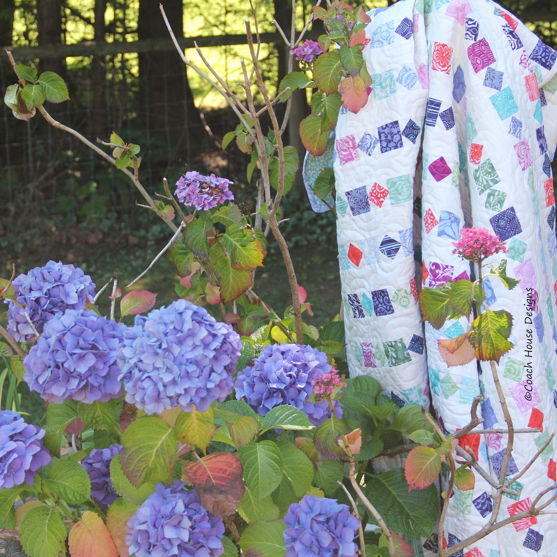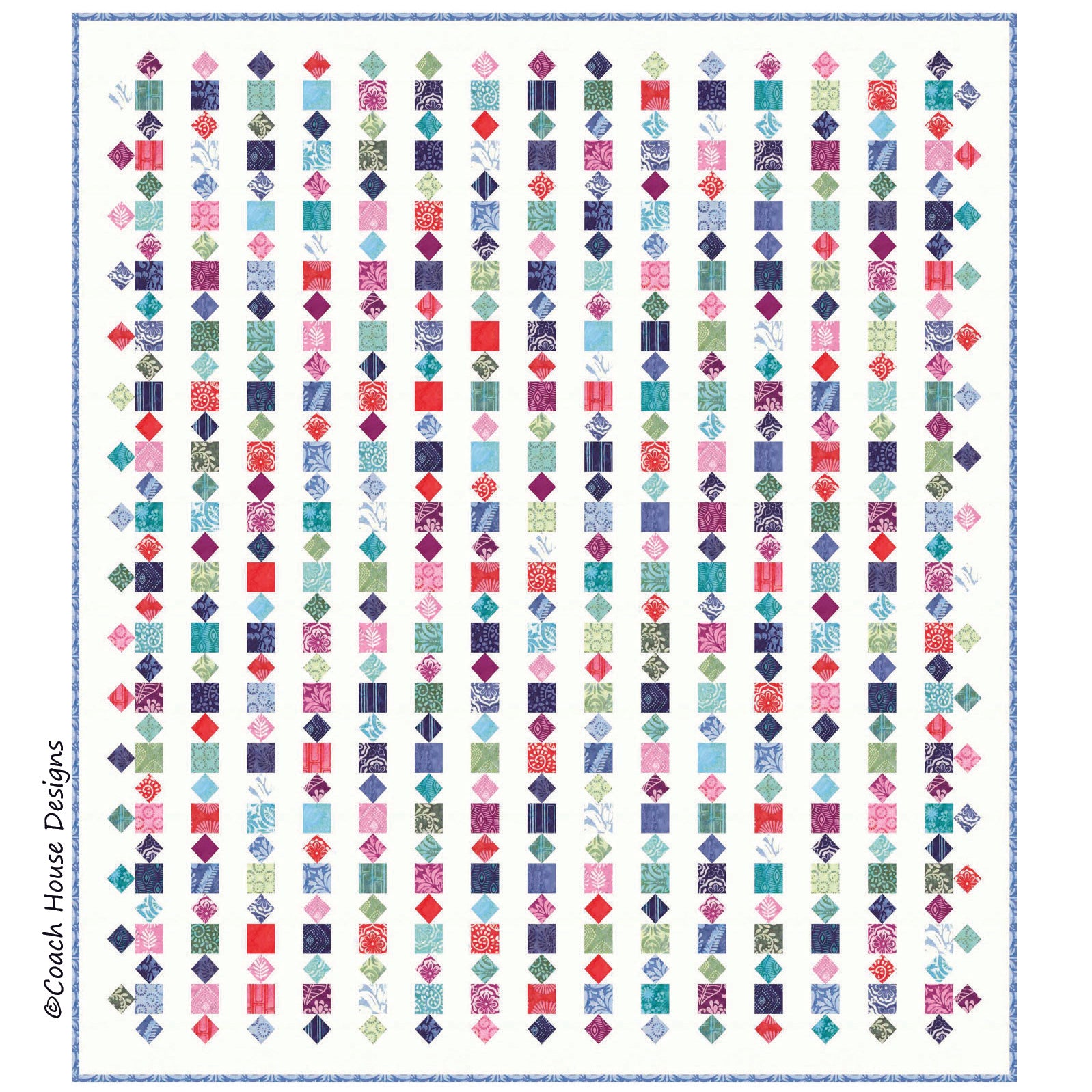 This Impressive 66" x 70" lap quilt featuring "Latitude Batiks" by Kate Spain uses a jelly roll. Perfect project for that jelly roll (2 1/2" strip roll) sitting on your shelf.