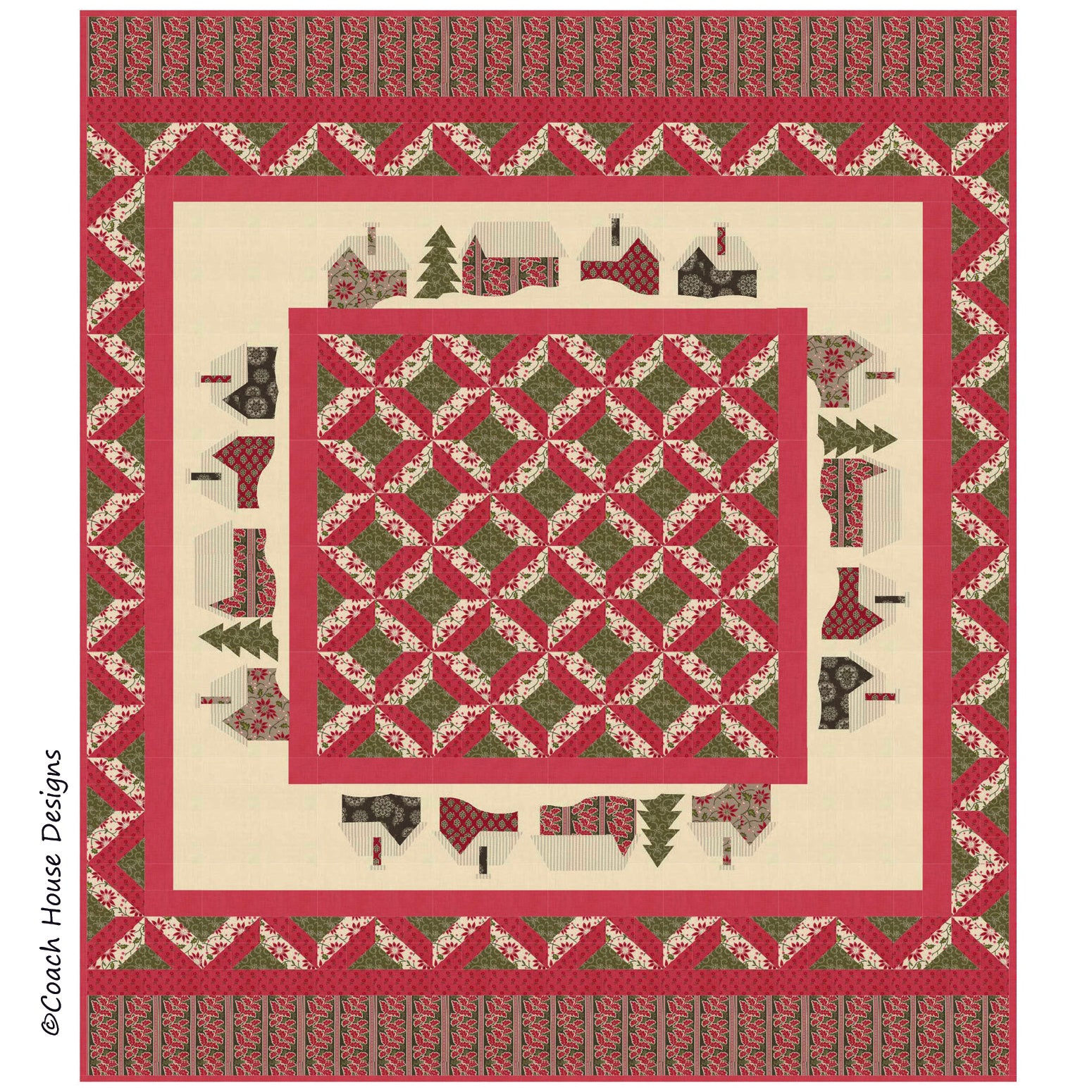 This 64" x 80" winter lap quilt is elegant and fun to make. It features "Petites Maisons de Noel" by French General. This fabric was released in 2017 but it would look great in any French General Christmas fabric.