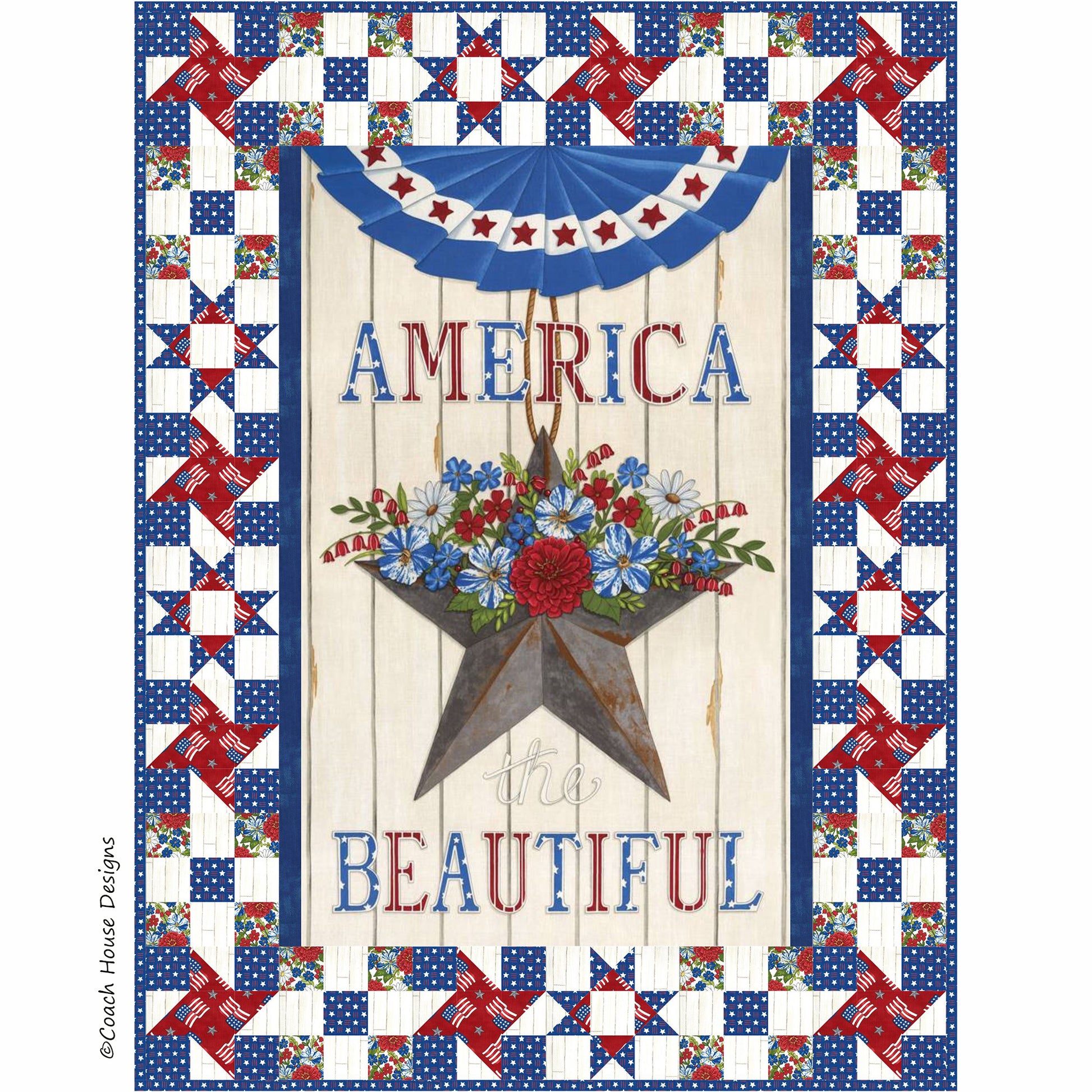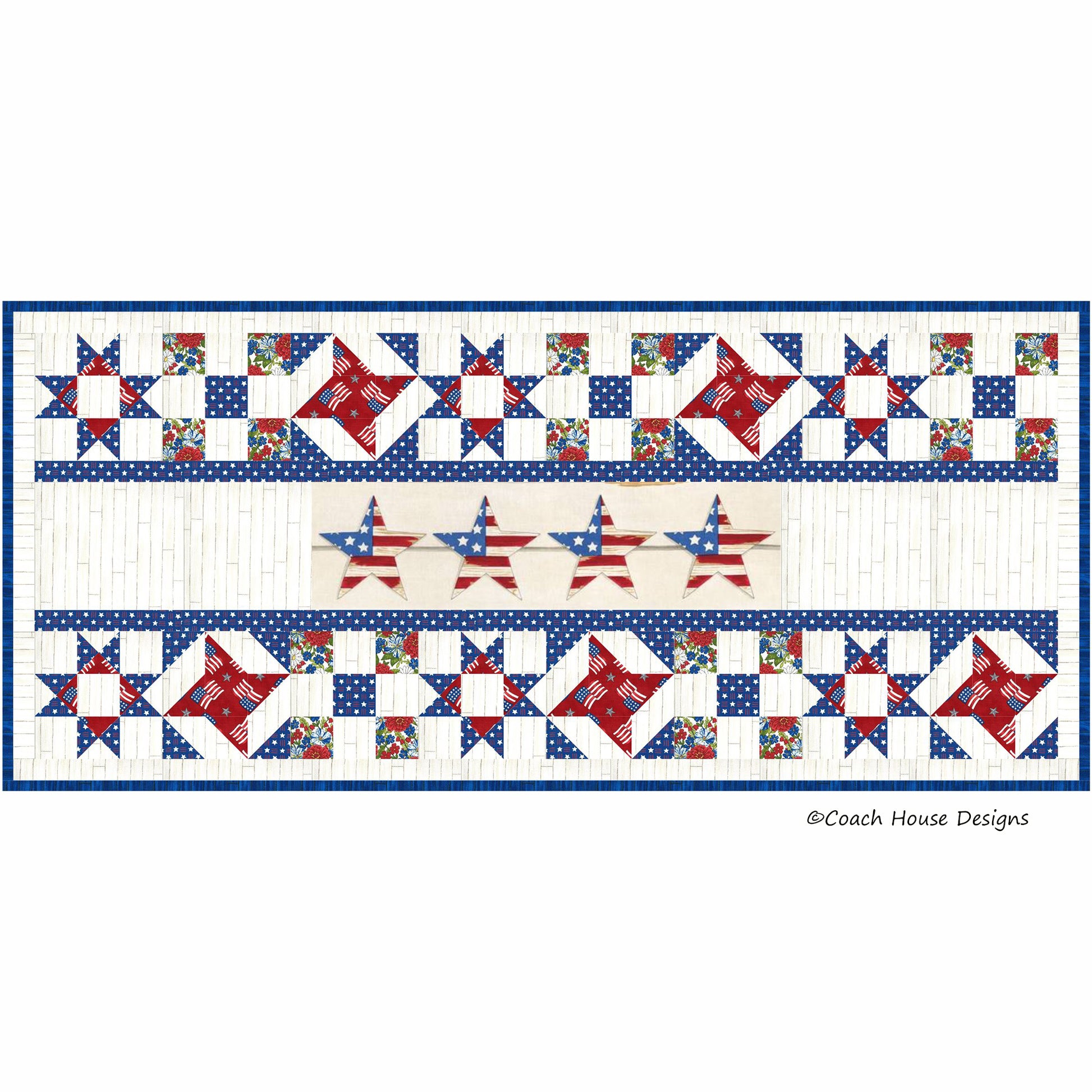 This pattern includes instructions to make a 36" x 48" wall quilt and a 21 1/2" x 50" table runner featuring Deb Strain's America the Beautiful panel. This fabric will be in stores in January 2021.