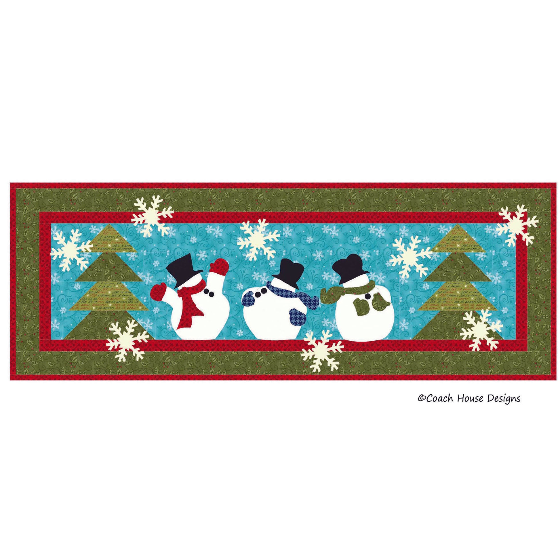 This cute table runner (16" x 46") uses fusible applique and features the fabric line "Snow Much Fun" by Deb Strain. This fabric was released in 2017 but it would look cute in any winter/Christmas fabric.