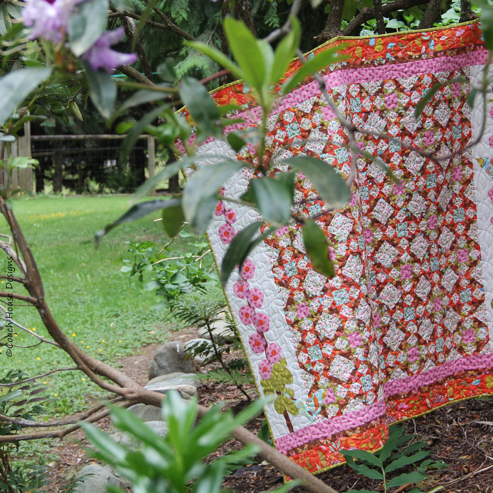 Colorful and cute lap quilt (58" x 54") for both spring and summer. Features "Wing & Leaf" by Gina Martin. If orange and pink are not your colors, change the fabrics to your favorite fabrics.