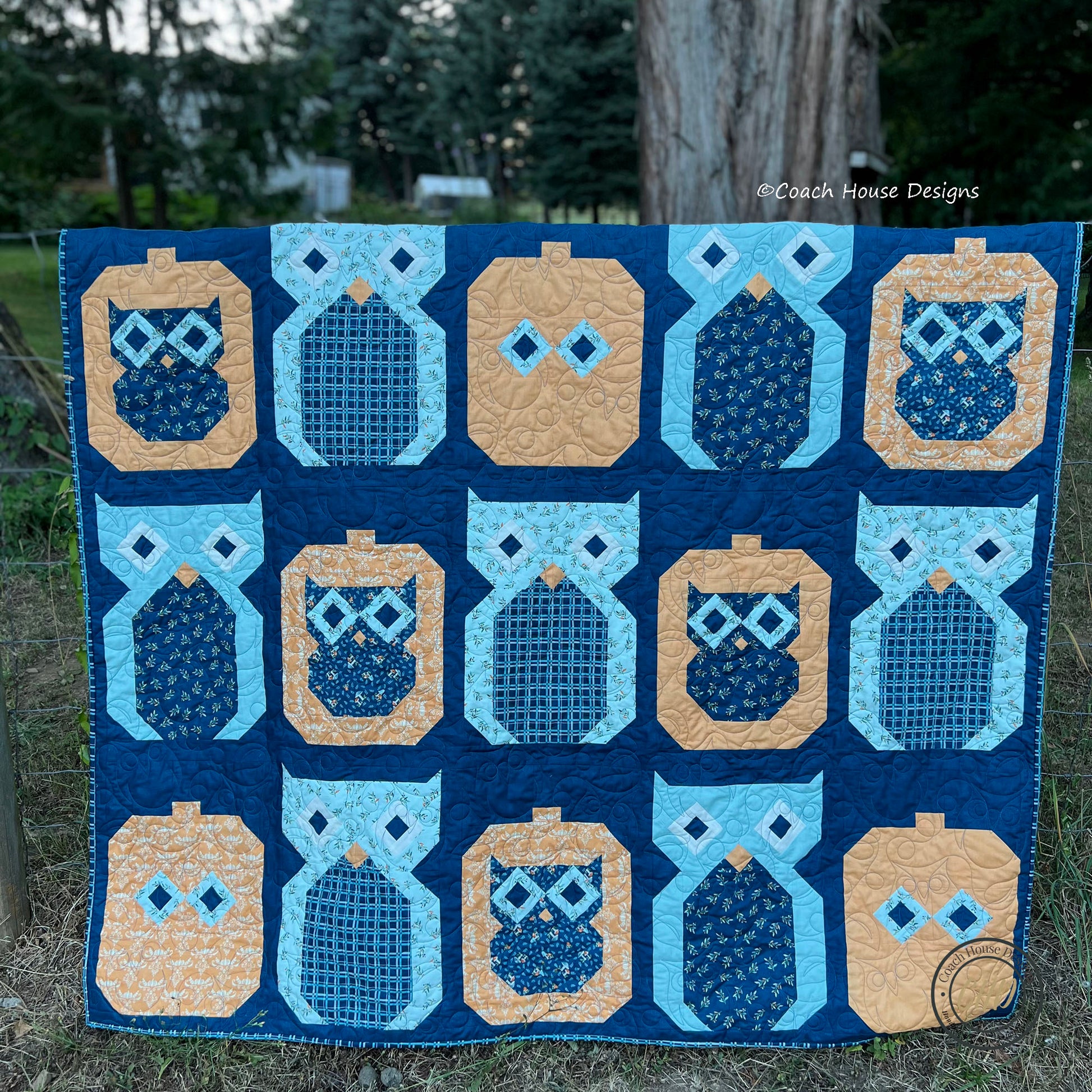 Welcome the crisp air and vibrant colors of autumn with Autumn Owls, a delightful 68" x 78.5" lap quilt that captures the essence of the season. This quilt features charming, repeating owl and pumpkin blocks, perfectly pieced together in a design that’s as cozy as it is captivating.