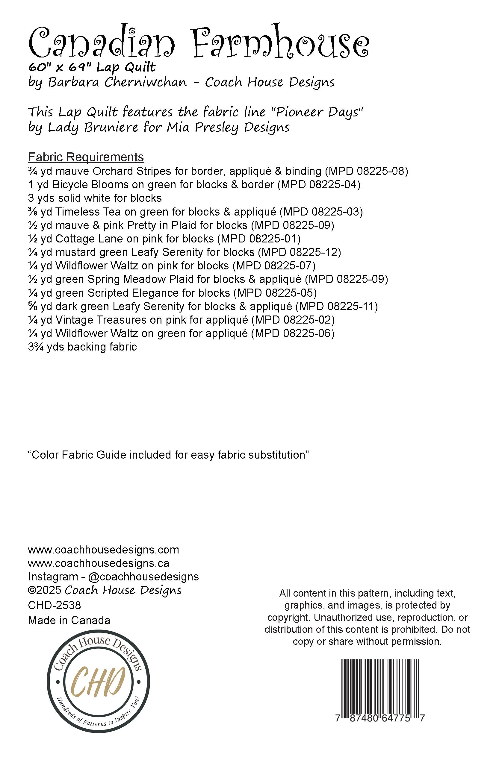 Canadian Farmhouse Quilt Pattern by Coach House Designs