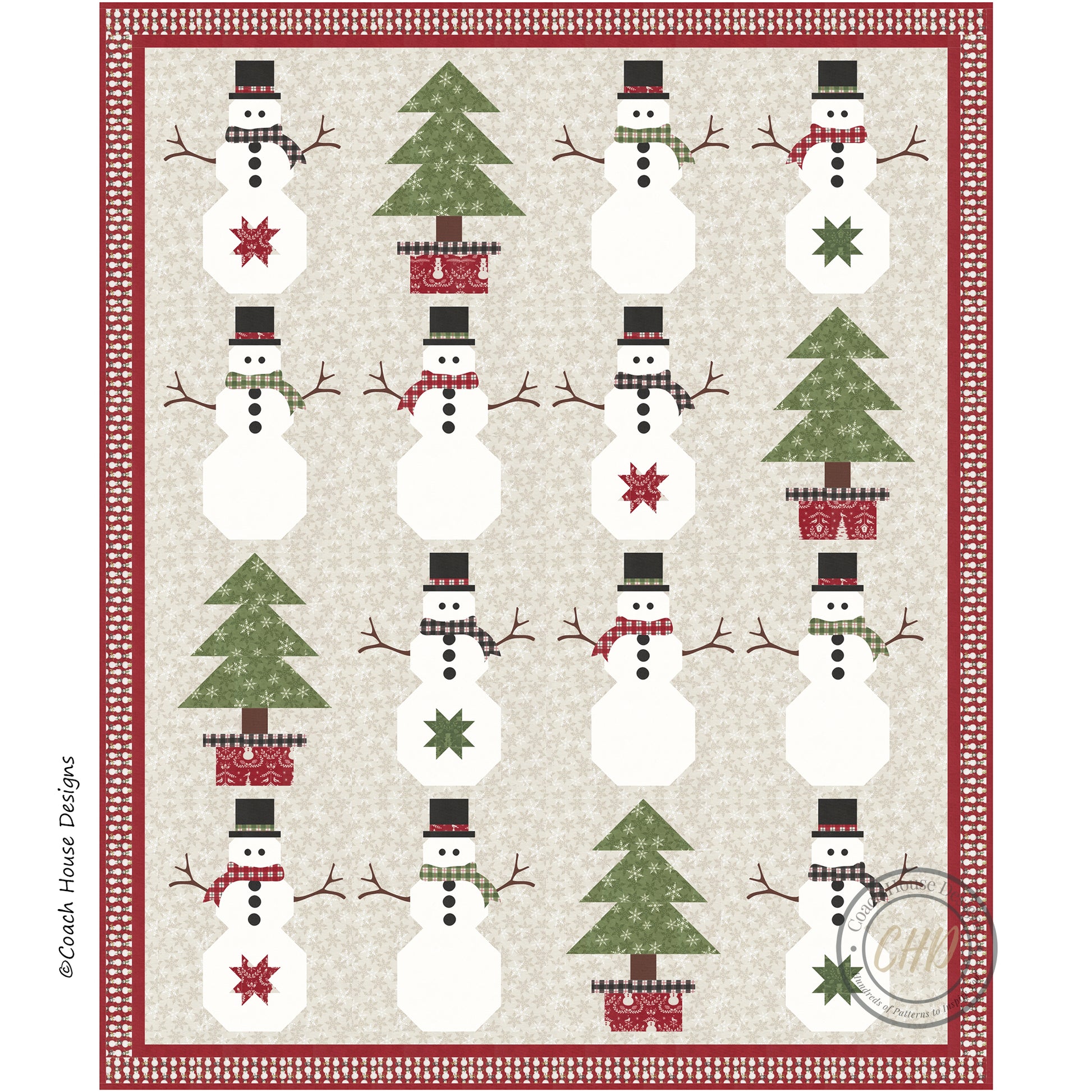 There is nothing frosty about this snowmen quilt....but there is something adorable about it! My latest pattern "Line Dancing" is inspired by the beautiful artwork in Deb Strain's holiday collection "Winter Friends". Finishing at 68" x 63", the pattern features a tree block and a snowman block, which uses applique for the details in the block.