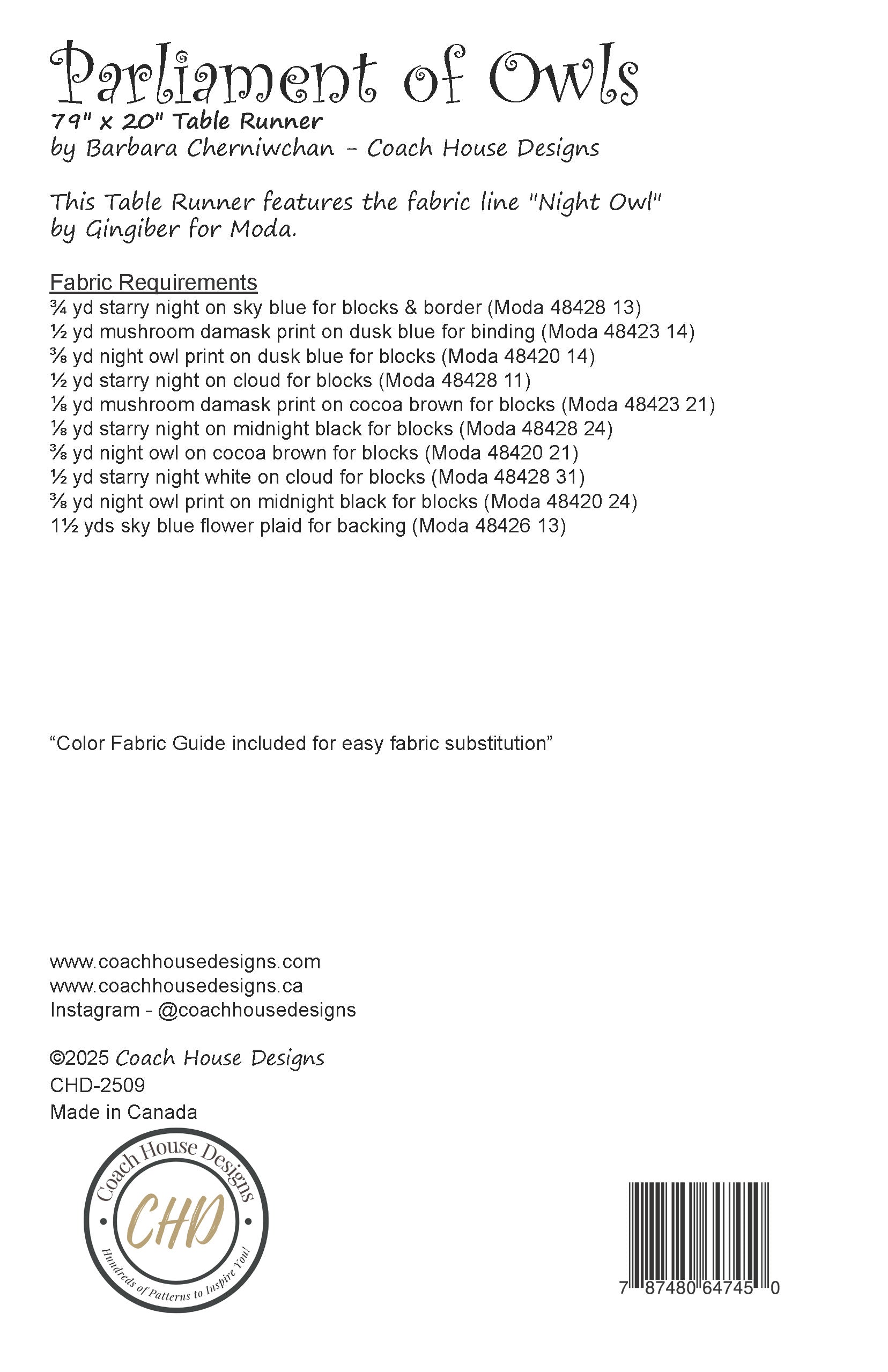Parliament of Owls – Quilt Table Runner Pattern by Coach House Designs
