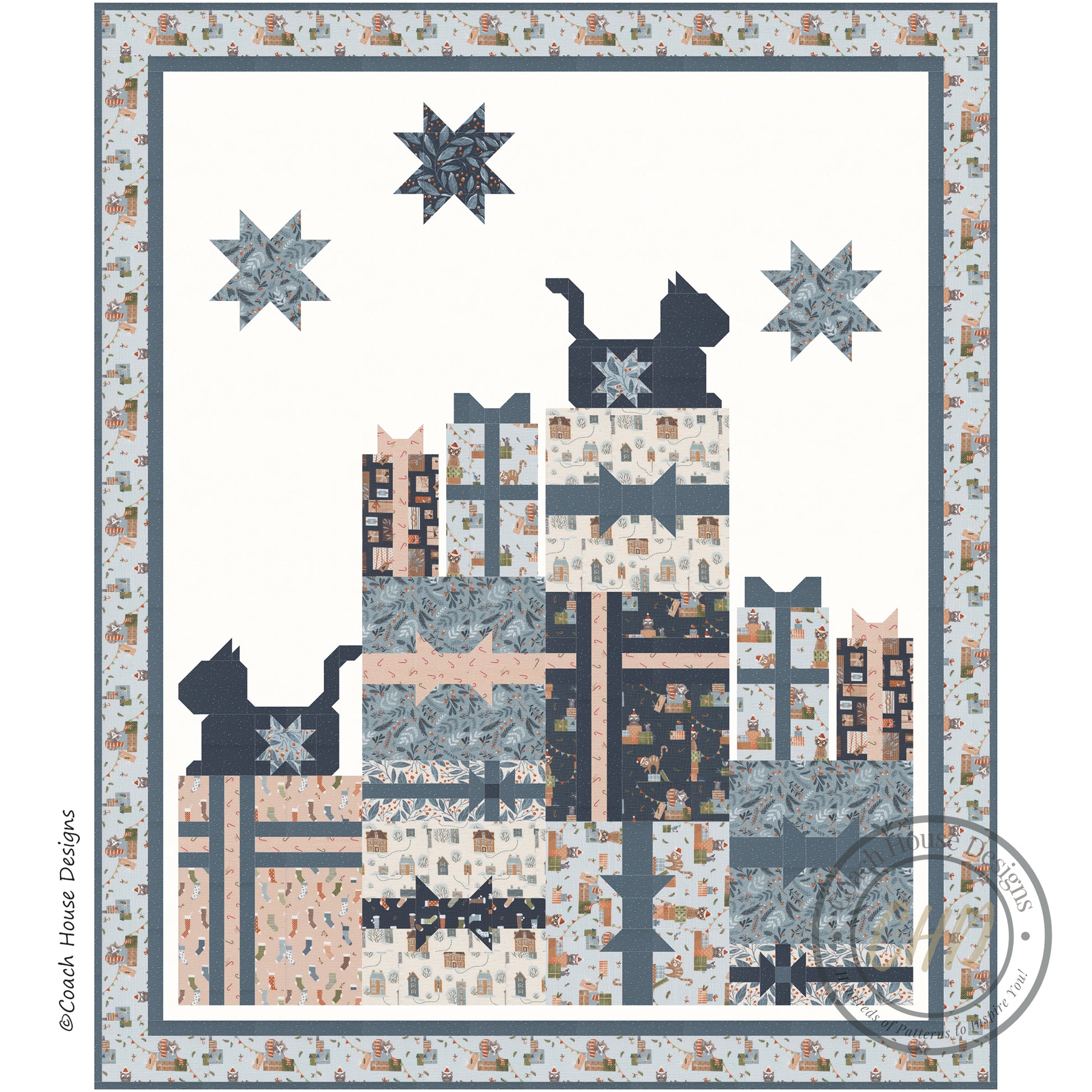 Purrfect Christmas will be shipping to your local quilt shop in May 2025, but the pattern is available now!