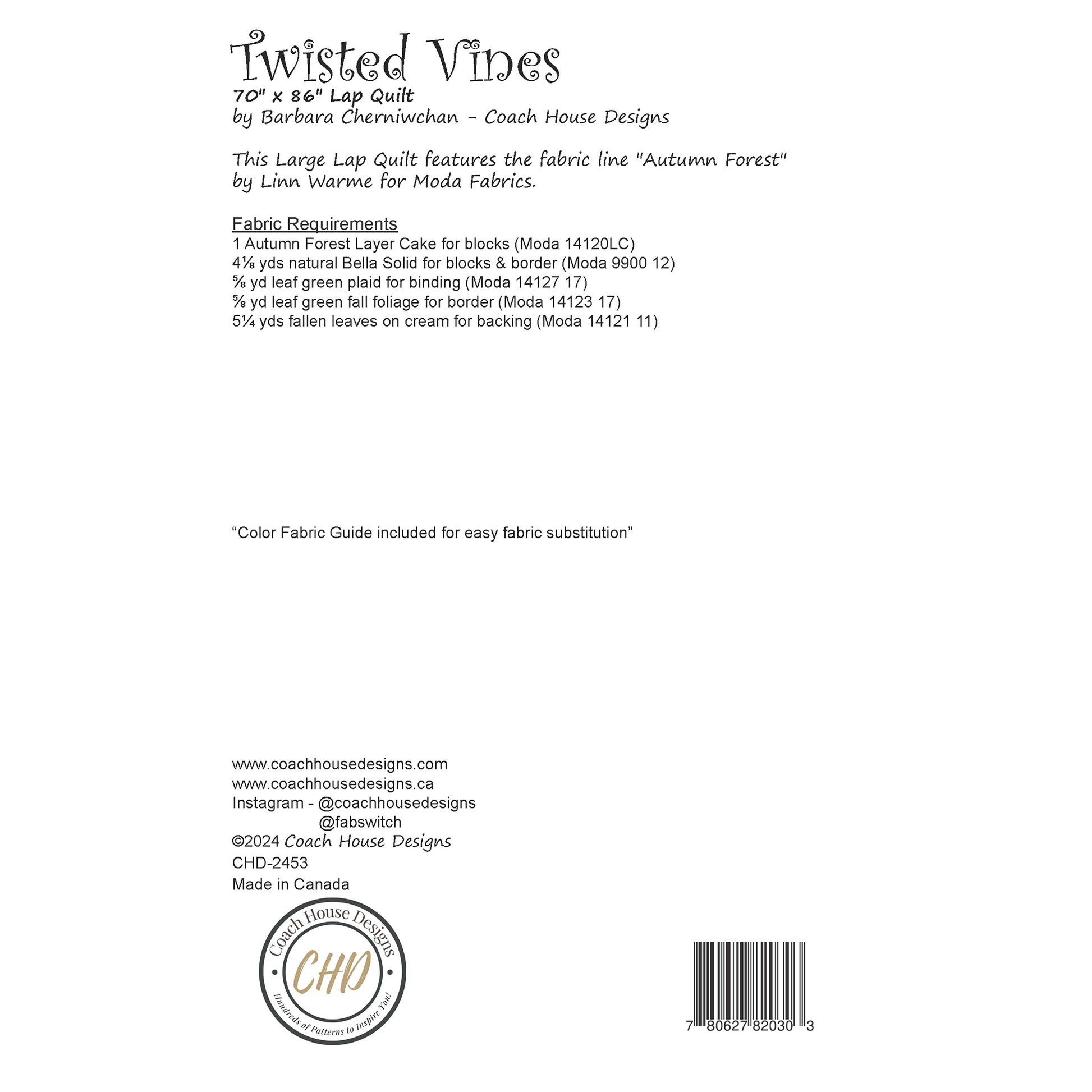 Twisted Vines is designed to complement the Autumn Forest fabric collection by Linn Warme for Moda Fabrics, but would look great in any fall or autumn-themed fabrics.