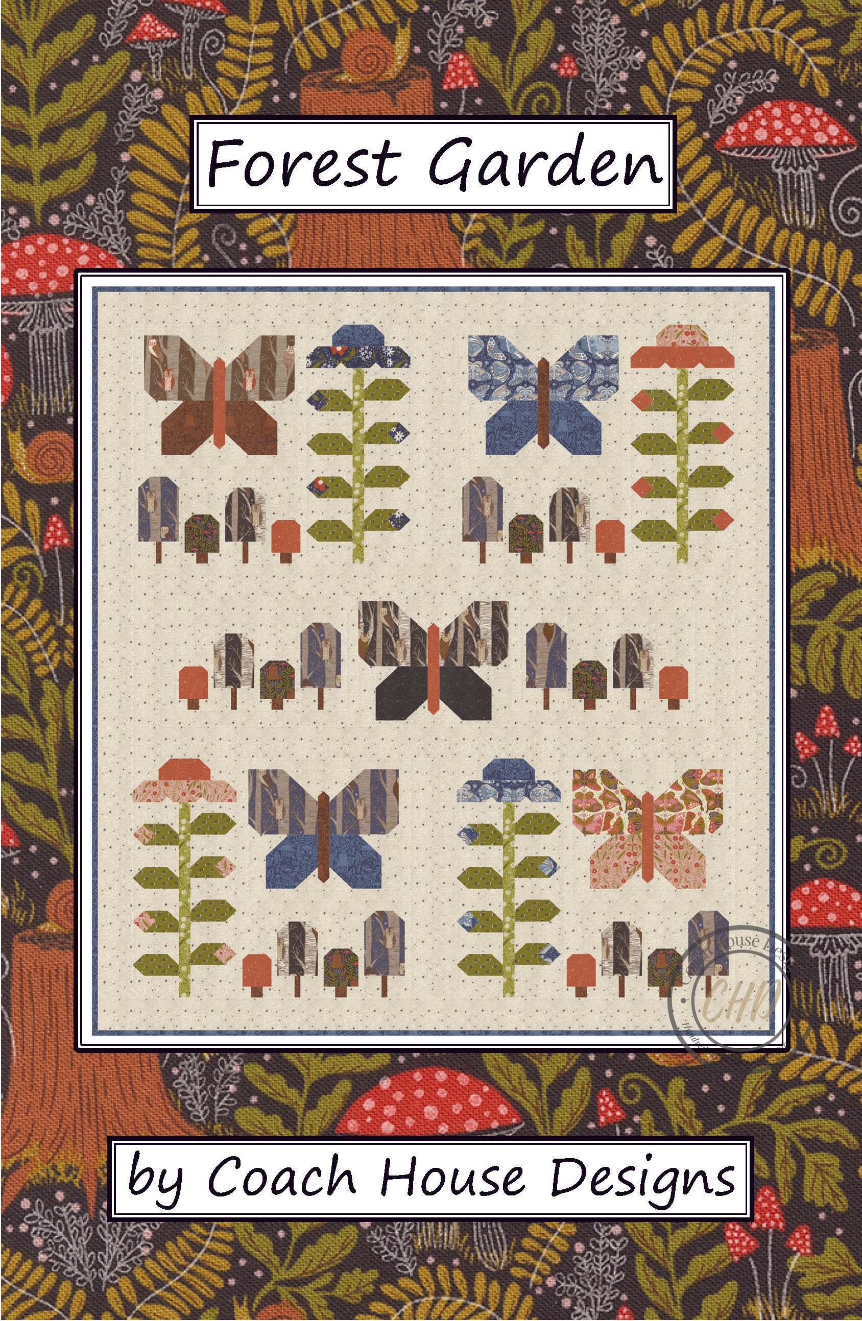 Step into the enchanting world of Forest Garden—a whimsical lap quilt that captures the magic of spring and the richness of late summer. Measuring 58" x 68", this charming design showcases playful butterfly, mushroom, and floral blocks that bring nature to life in fabric form.