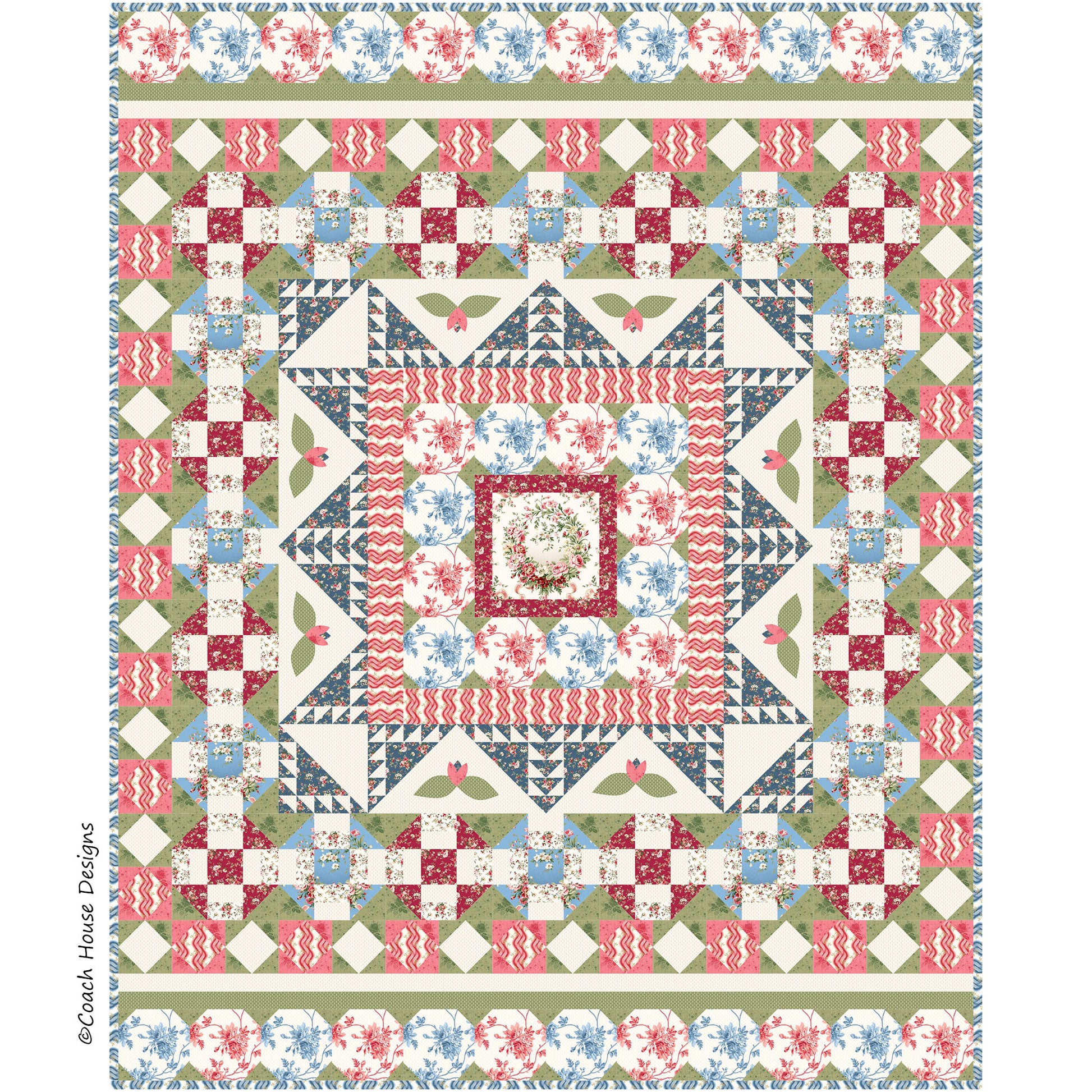 48" x 60" traditional/vintage Lap Quilt features the new fabric line "American Beauty" by Robyn Pandolph Saxty for Maywood Studio. This is a timeless project that is guaranteed to become an heirloom. Fabric available Fall 2022.