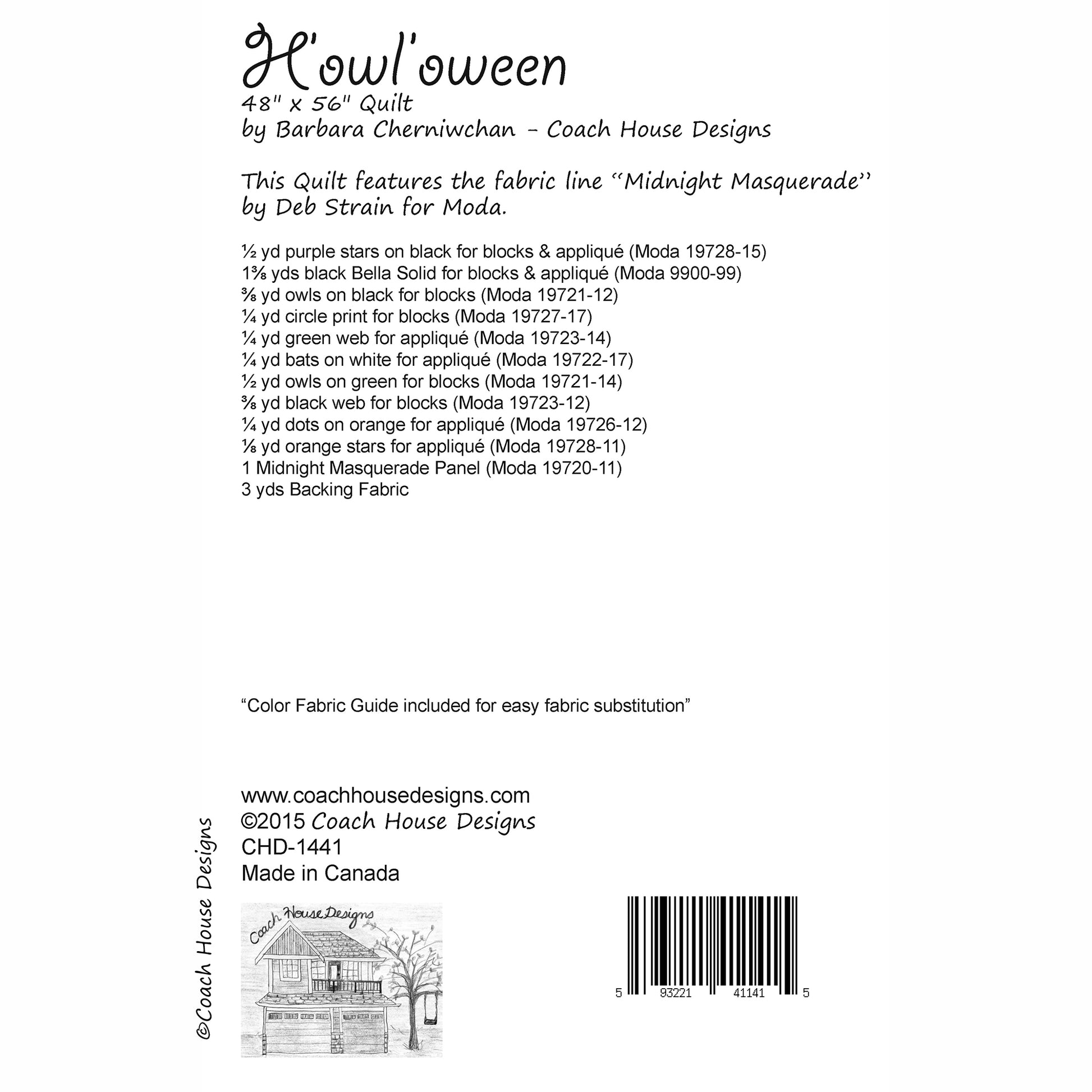 This adorable Halloween project measures 48" x 56". The center of the quilt features the Midnight Masquerade panel by Deb Strain which was released in 2015. Use this pattern to frame your favorite Halloween panel which needs to measure 22 1/2" x 42 1/2" unfinished. Pattern is also available as a digital PDF download at a discounted rate