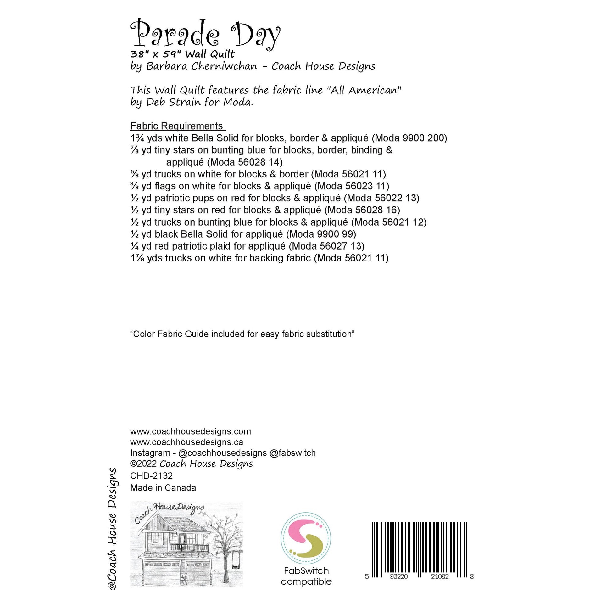 Celebrate the 4th of July parade in your own home with this Americana 38" x 59" wall quilt featuring "All American" by Deb Strain for Moda. There is a bit of applique on this but it is done with fusible web so it is easy peasy. The pattern is available now and All American will be in stores March 2022.