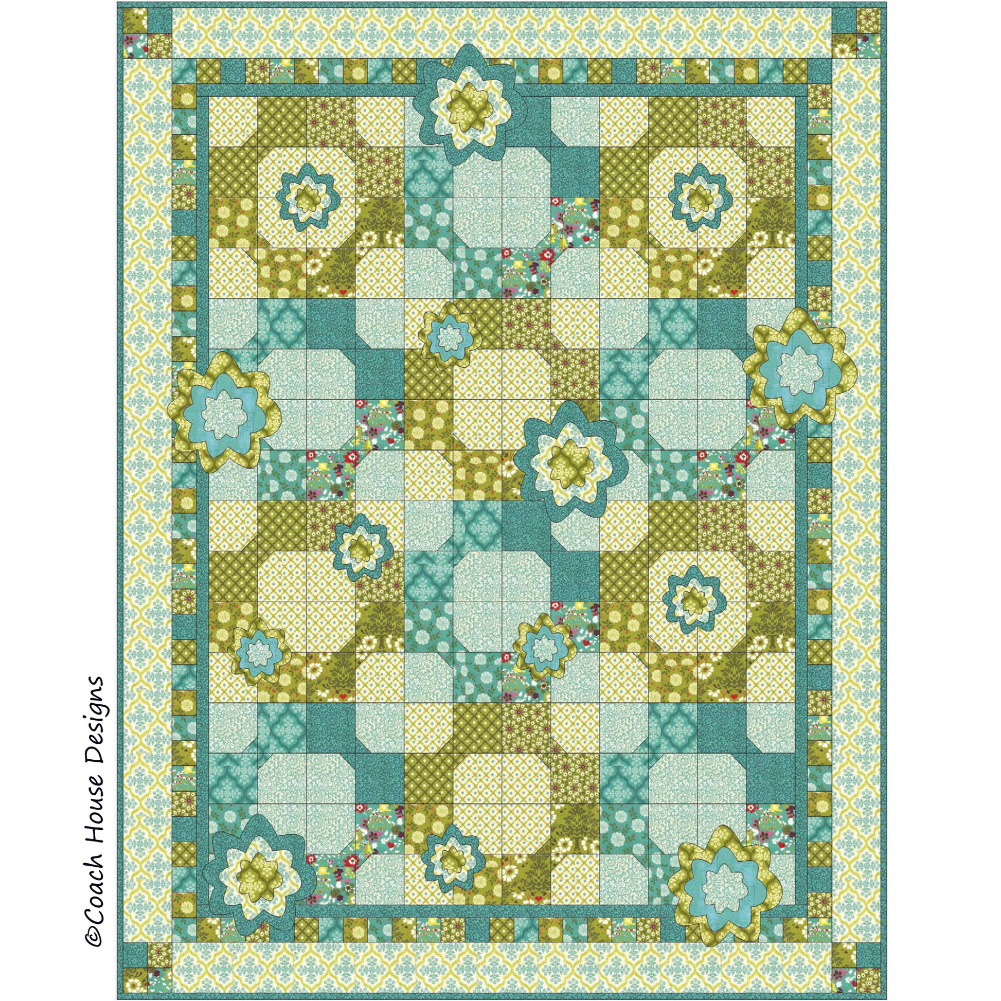 Pretty 62" x 78" lap quilt with rough edge applique makes this a quick weekend project. Even better this pattern is FabSwitch compatible.